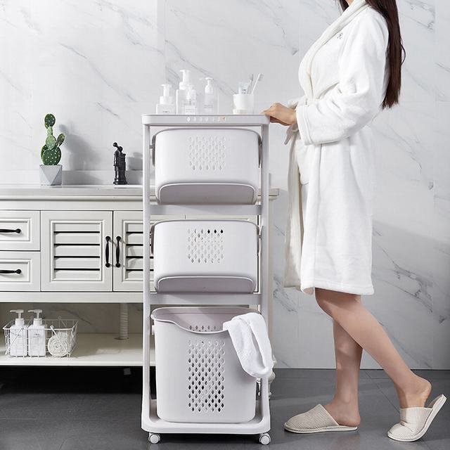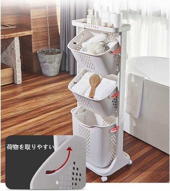 ランドリーバスケット ランドリー カゴ ランドリーラック ランドリーボックス 洗濯カゴ 洗濯物入れ 脱衣カゴ 収納バスケット 3段