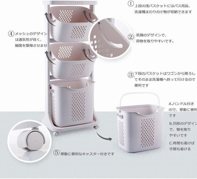 【サイズ(約)】掲載写真をご参照ください。 【特徴】 1.荷物を取りやすいです。 2.ハンドル付きので、移動にも便利、強度も抜群です! 3.メッシュデザインで通気性が抜群で、細菌を繁殖させません. 【便利なキャスター付き】4つキャスター付きで、360度回転できので、時間も省けば手間も省ける。材質を精選し丈夫でPP素材、強度も抜群で、荷重の性能は良いです。 【多機能収納】上段・中段には着替えやタオル、普段よく使う小物などの収納に、キッチン収納も大活躍!ランドリーボックスとしてだけでなく、衣替えで衣類の整理整頓用や、本など、場合によって色々なものが入れられ、様々なシーンで活躍します。 【工具不要】簡単にセットすれば、すぐ使用可能です。女の子も楽々できます。清潔感のあるホワイト色とナチュラルな風合いの籐あみ調デザイン。