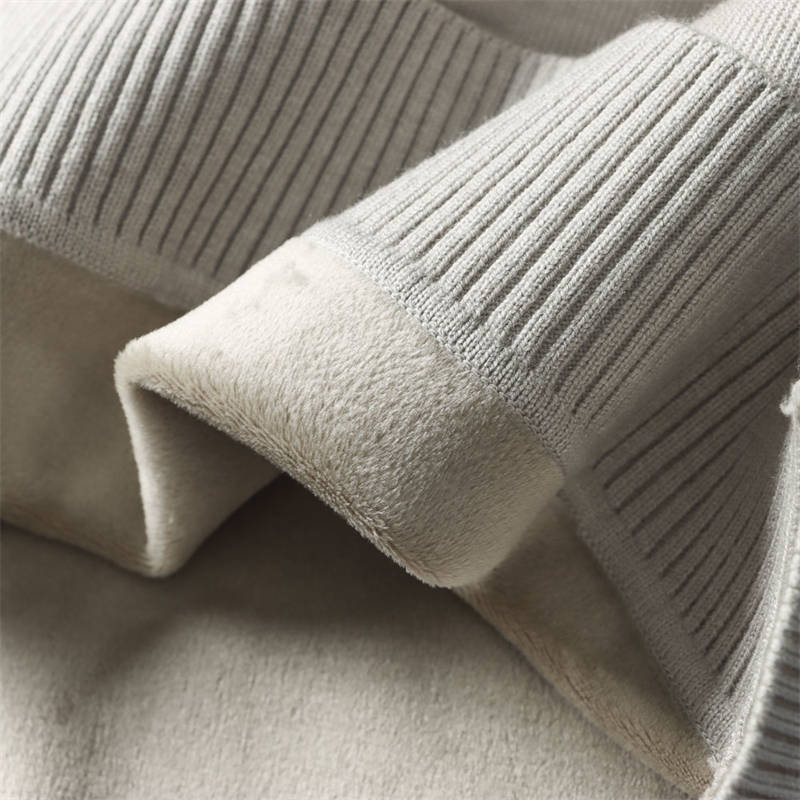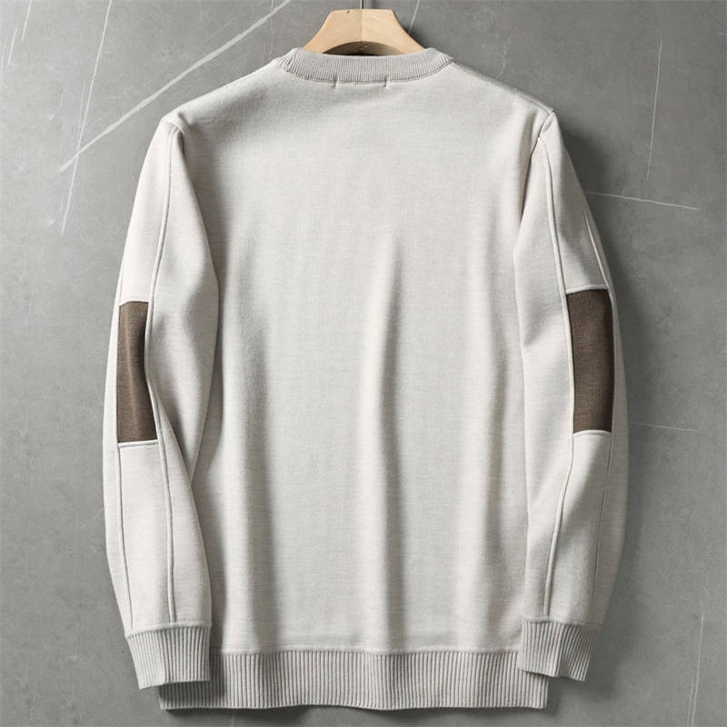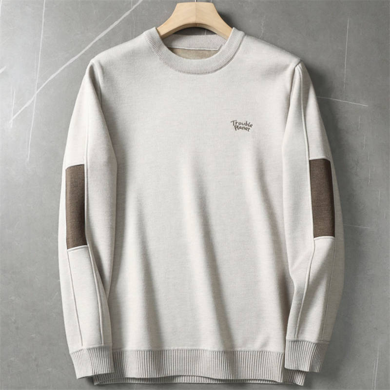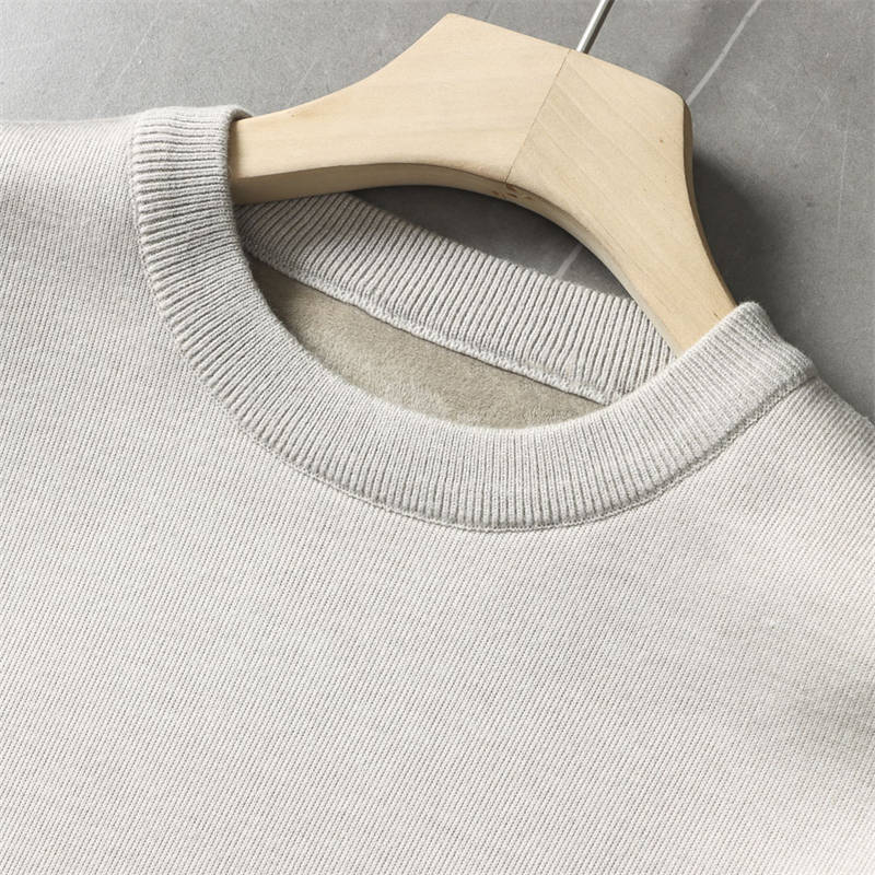 A530-Lカーキ ウール混 ニット セーター 裏起毛 メンズ 新品 防寒 厚手 秋冬 カジュアル クルーネック トップス プルオーバーセーター