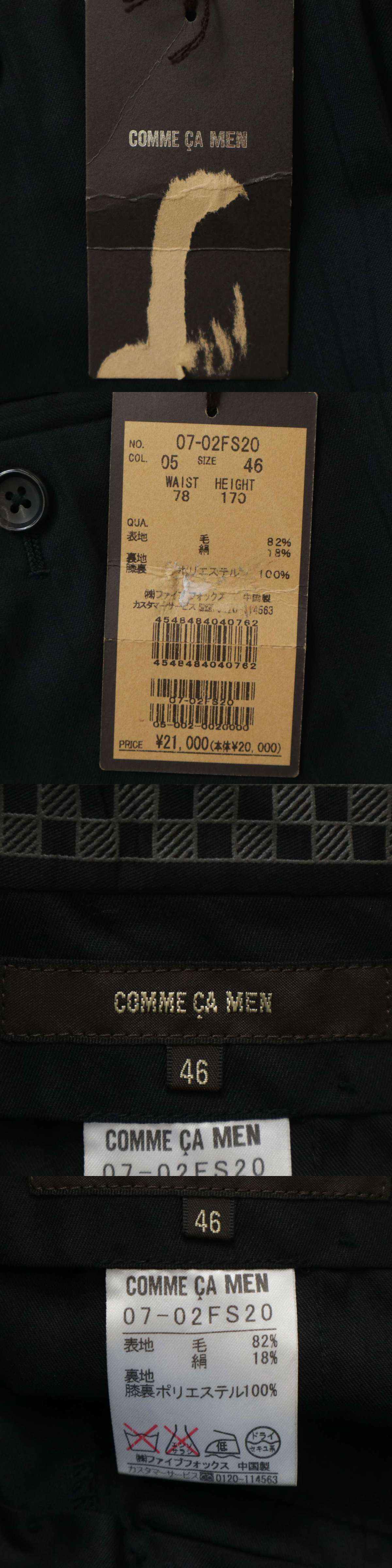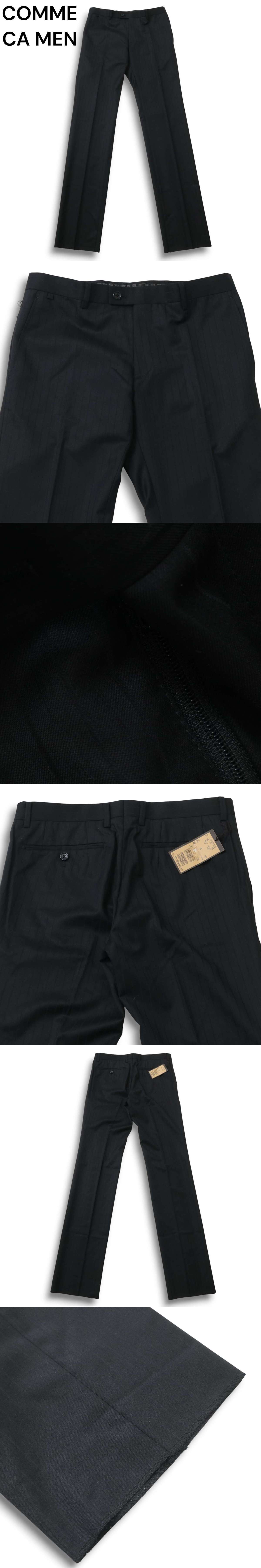 【新品 未使用】 COMME CA MEN コムサ メン 秋冬★ シルク混 ストライプ スラックス パンツ Sz.46 メンズ 黒