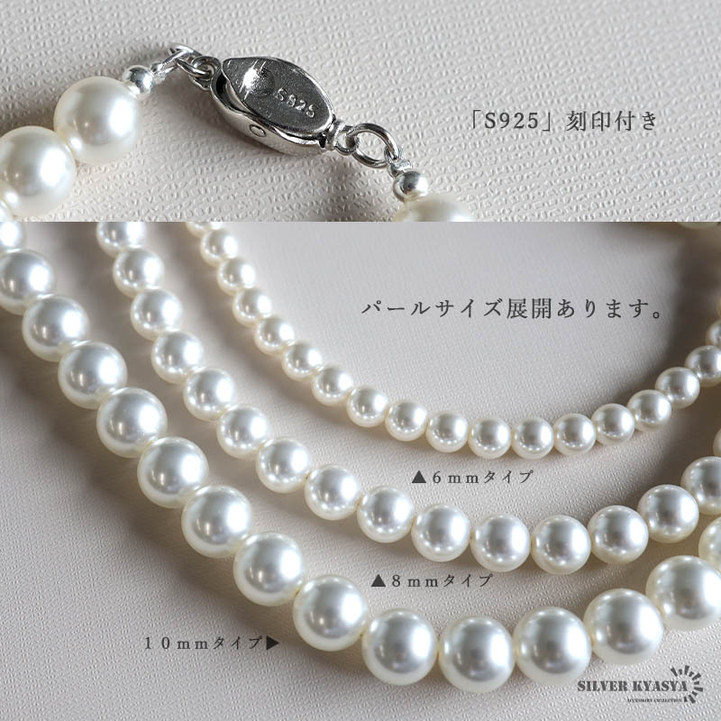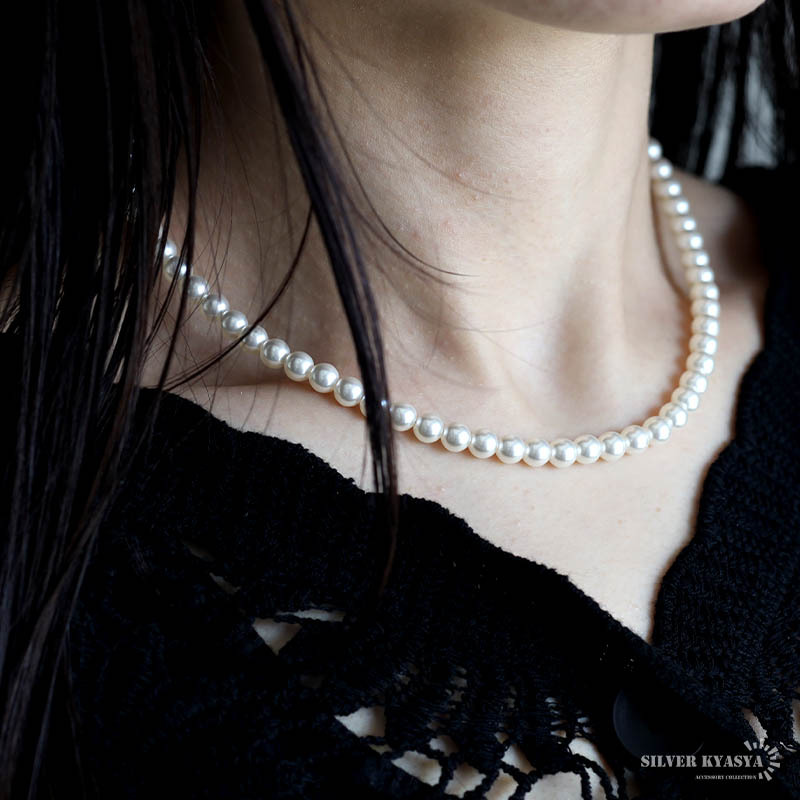 | 商品概要 | ■ITEM DETAIL 幅6mmのパールネックレス。ツヤ感のあるパールが胸元で優しく輝きます。パールは金属製ワイヤーでしっかり繋げてあるのでちぎれにくい仕上がりです。 ■金属アレルギー対応 留め具部分にはシルバー925素材を採用。全体的にはパールを基調としているため、金属アレルギーの出にくいアクセサリーです。 |