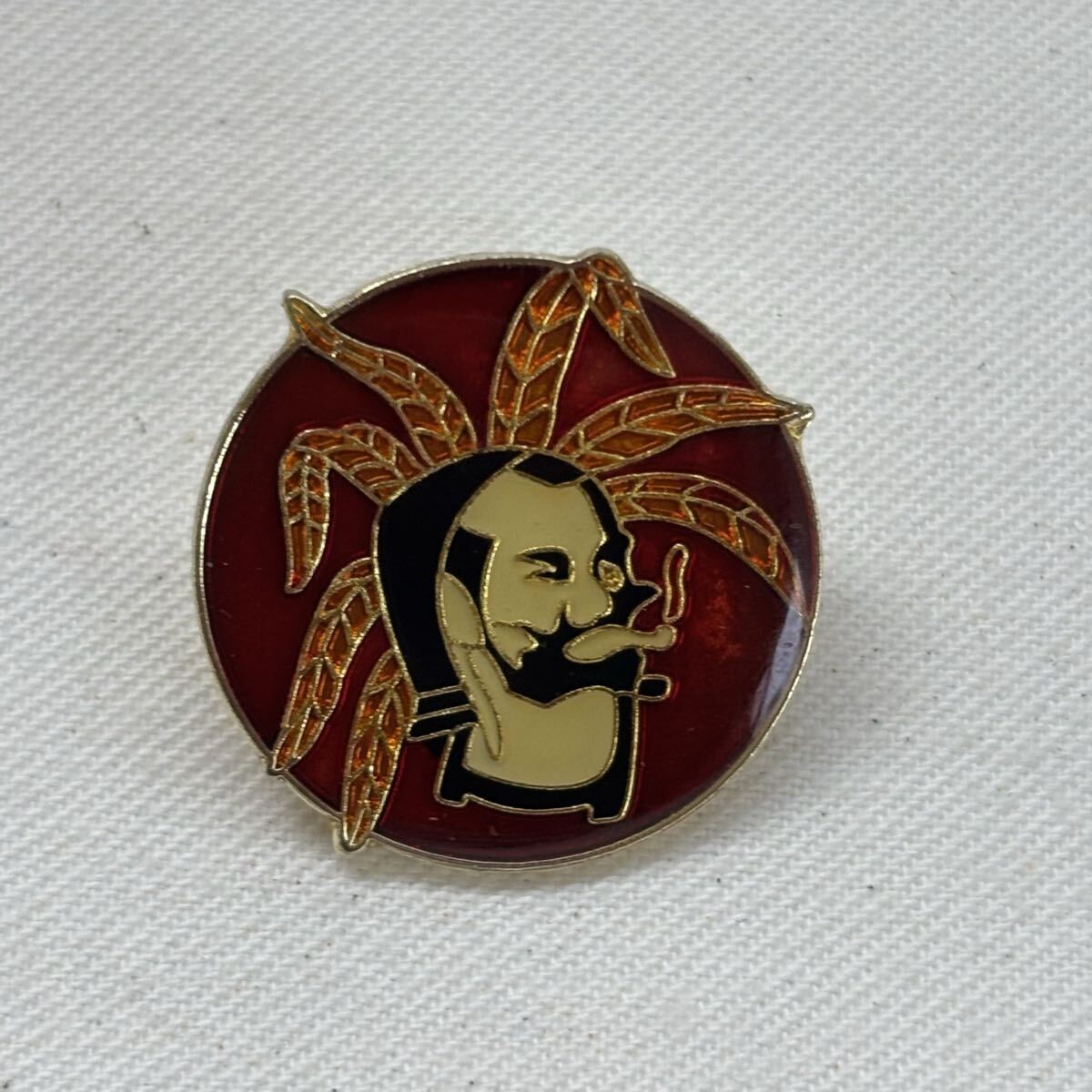 70年代らしいデザインのこちらのピンズは、ジグザクマンとマリファナの葉が描かれた定番のデザイン。