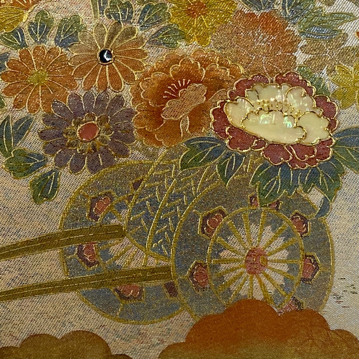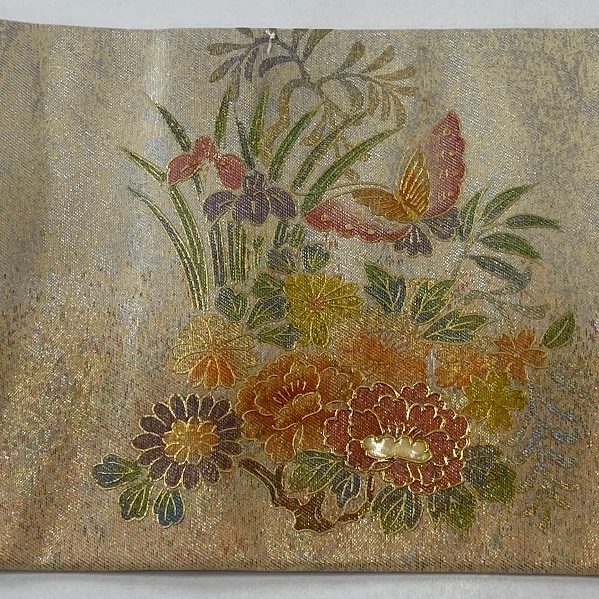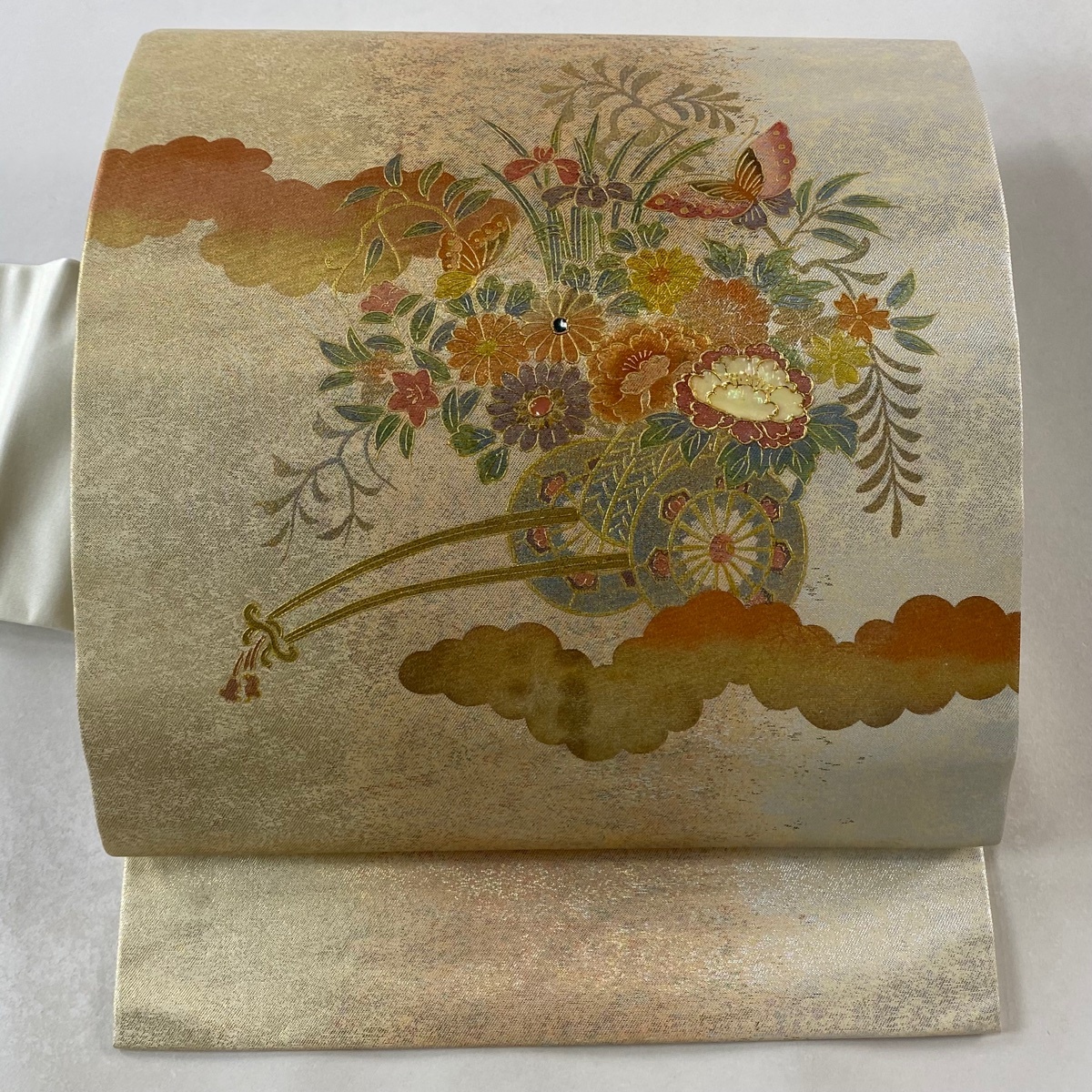 | 名古屋帯 美品 優品 花車 蝶 螺鈿 箔 ベージュ 正絹 【中古】 |