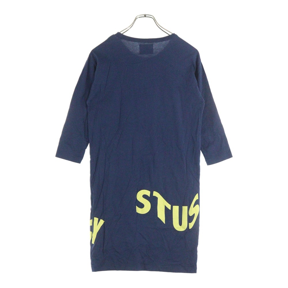 STUSSY ステューシー LOGO PRINT ONE PIECE ロゴプリント長袖ワンピース ネイビー
