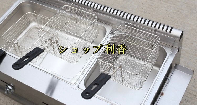 業務用ガスディープフライヤー 8L x 2 ステンレス鋼デュアルタンクガスディープフライヤー 2 つのバスケットと蓋付き ステンレス鋼 8Lx3