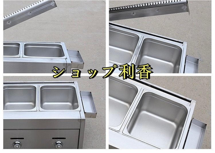 ?業務用ガスディープフライヤー:厚みのあるステンレス鋼の本体は統合技術で作られており、内タンクは厚みのあるステンレス鋼でできており、耐摩耗性、耐腐食性、お手入れが簡単です。