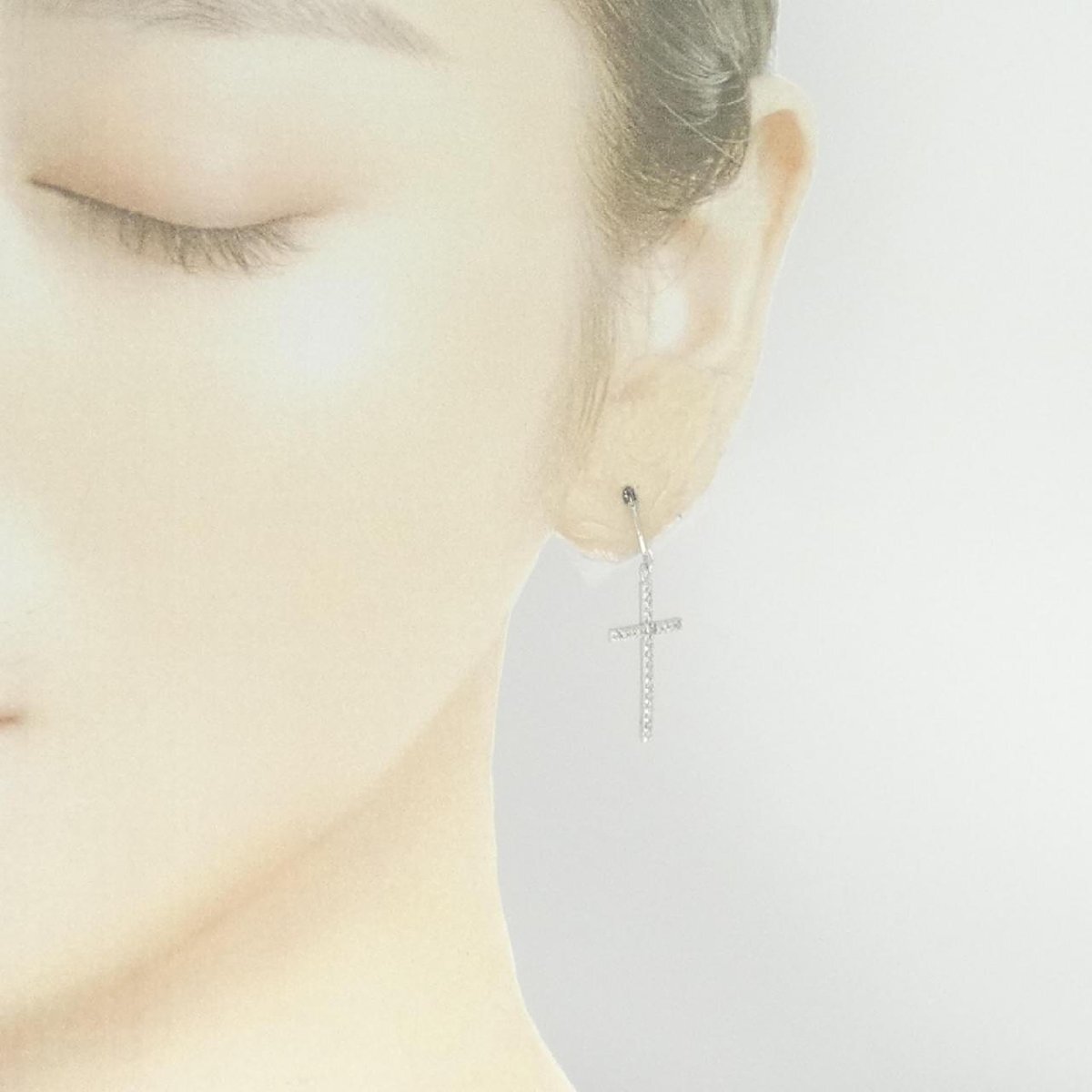 クリアに煌めくダイヤモンドをあしらったピアス。神秘的な輝きを放つクロスモチーフです。