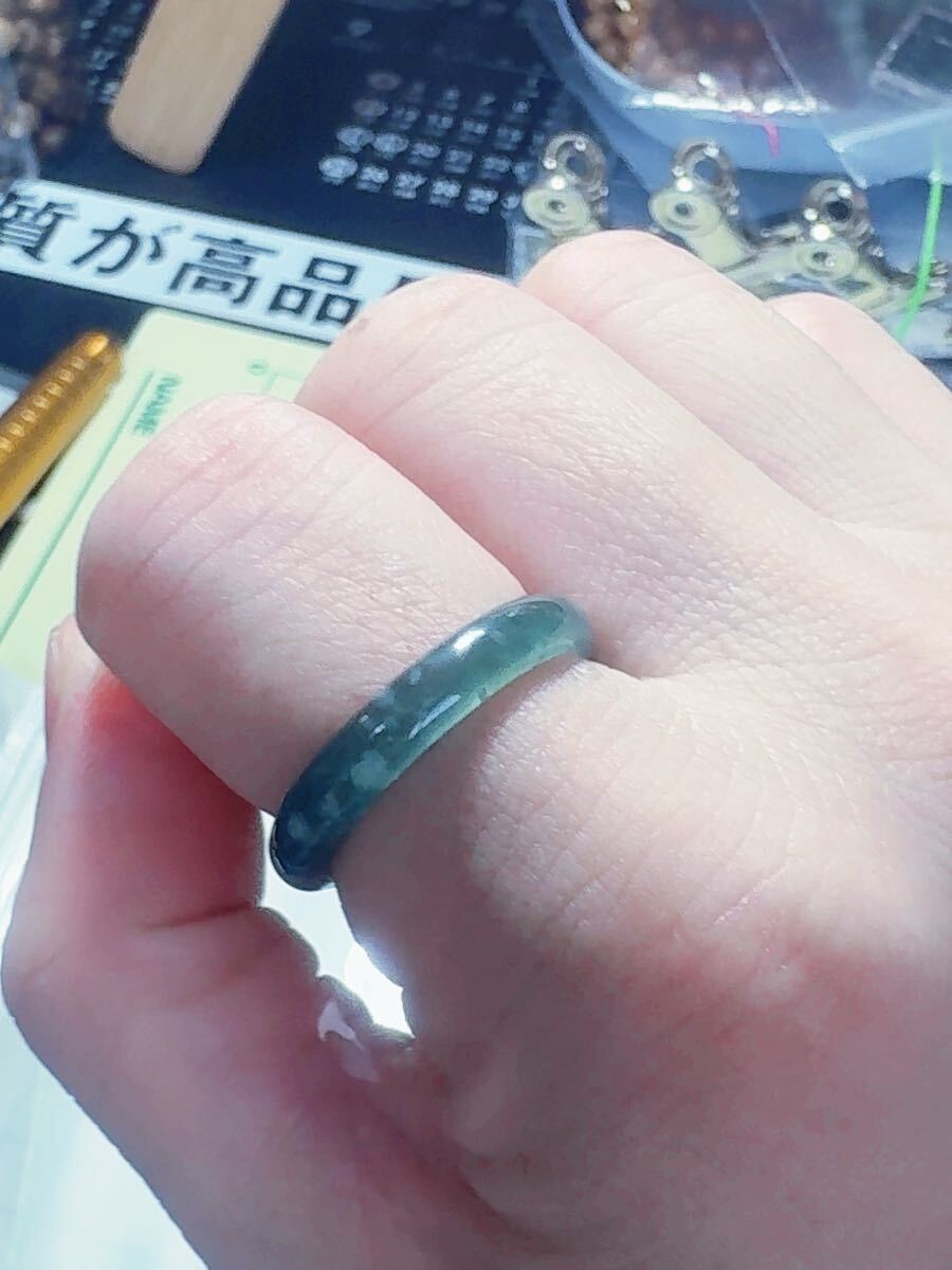 R2-02202天然本翡翠《本物保証》 藍水翡翠 指輪約17号 一点物 希少 縁起物 お守り 魔除け 昇進 成功 風水 金運 財運 幸運 幸福