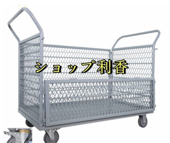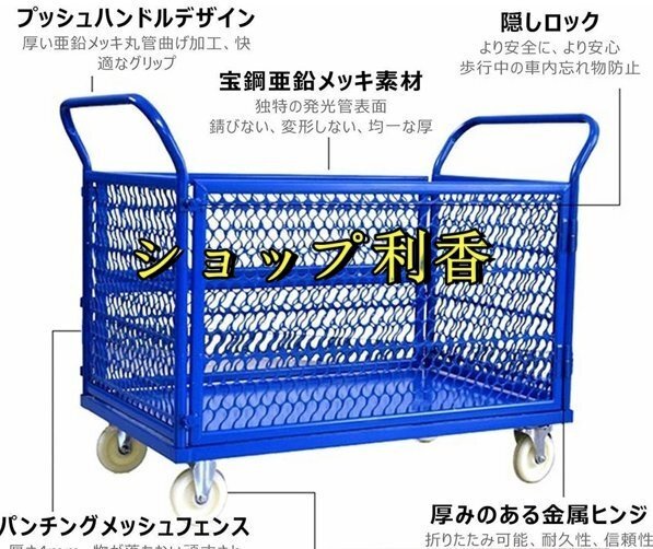 特売 ★カゴ台車 運搬車 手押し台車 静音 厚みのある素材 耐荷重300kg 耐磨耗 メッシュかご付き ブレーキ付き 折り畳み式のドア付き 倉庫
