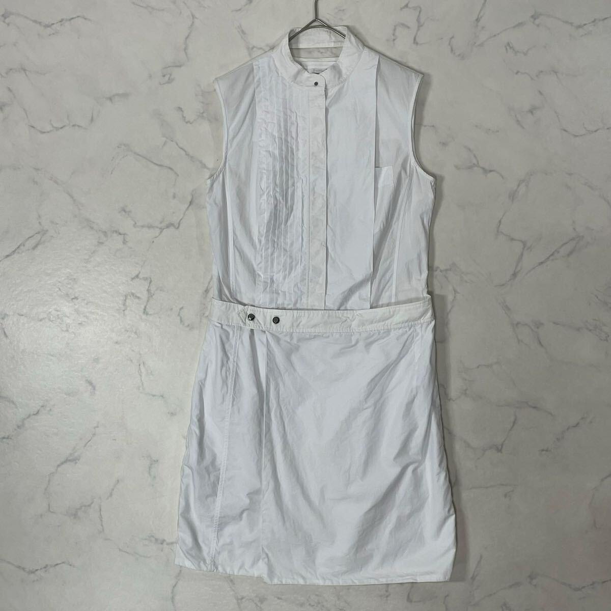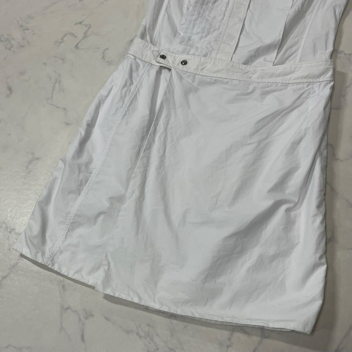 切替 ワントーン フライフロント ピンタック ダーツ タック ポケット ホルターネック コットン ノースリーブ ラップ風 ひざ丈 ワンピース