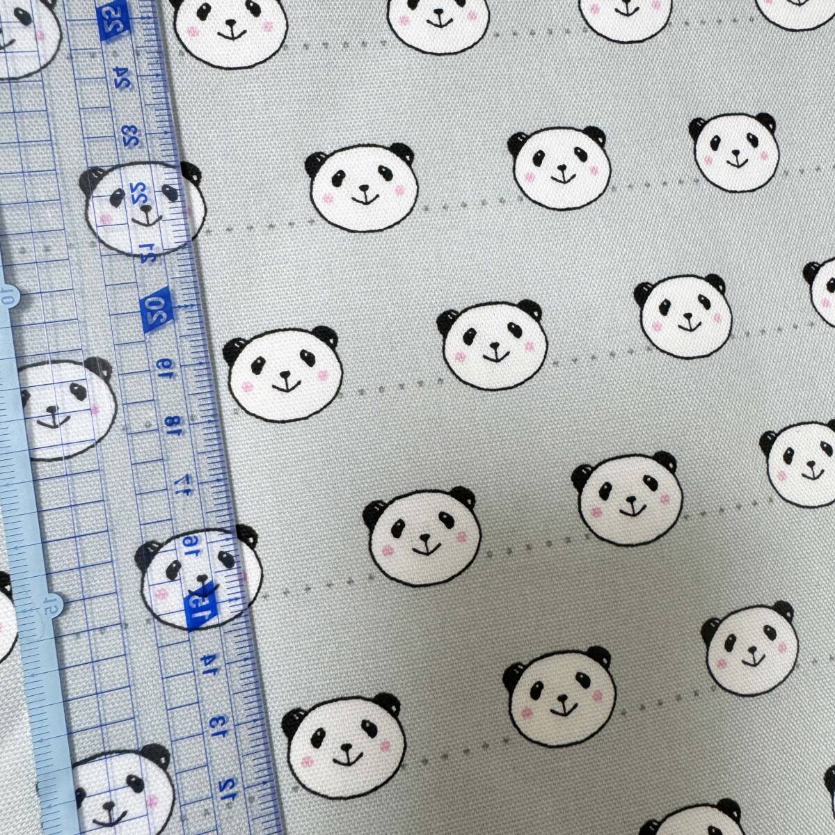【一旦ラスト】グレー地パンダ顔総柄★かわいい綿オックス生地1m★日本製★雑貨小物