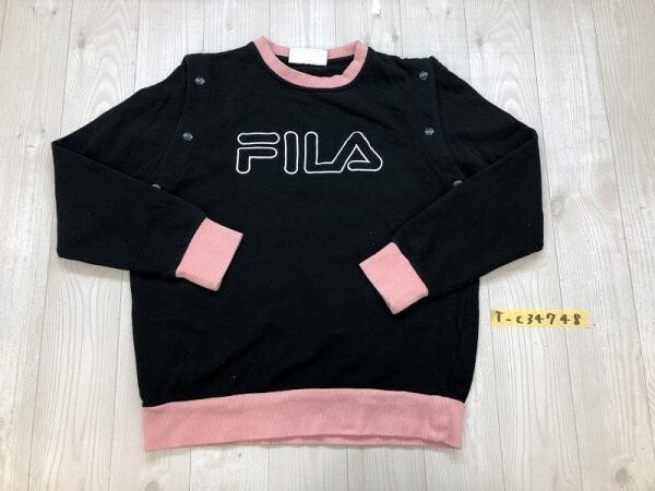 FILA フィラ メンズ 刺繍入 スナップボタン付き 袖2WAY 裏起毛 トレーナー S/P 黒ピンク です。