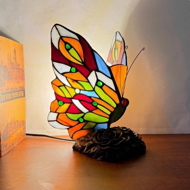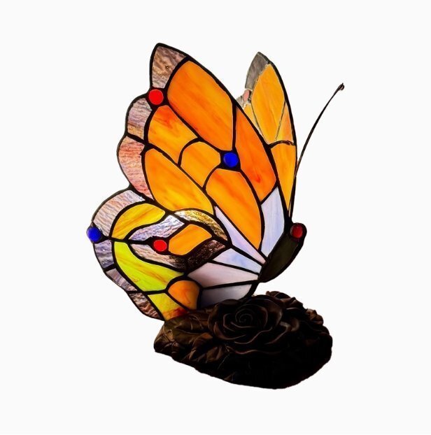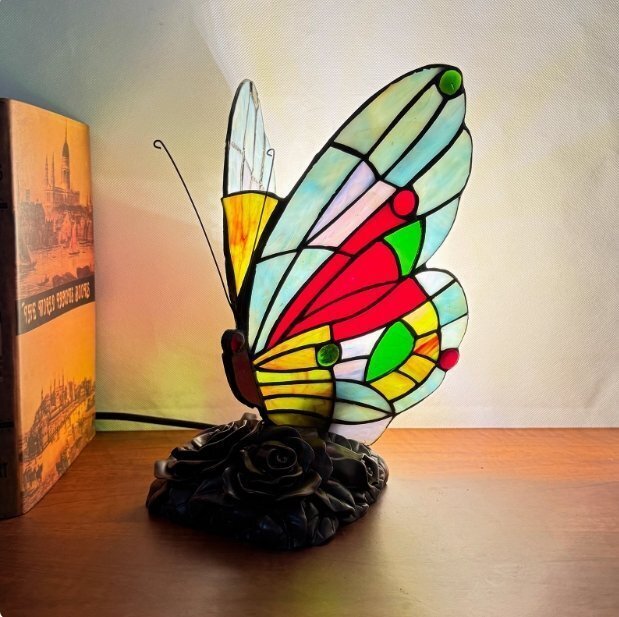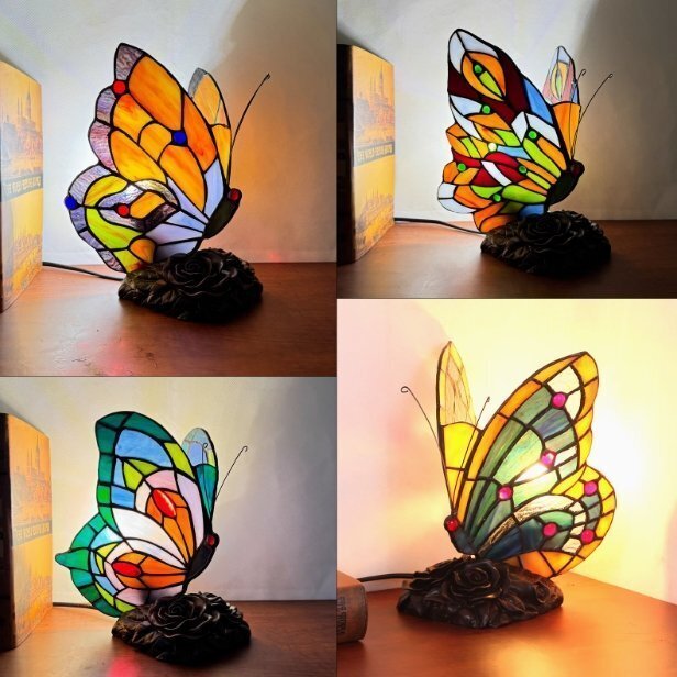 ◆稀少品◆芸術品◆ステンドランプ ステンドグラス 蝶 照明 レトロな雰囲気 室内装飾 ティファニー デスクライト