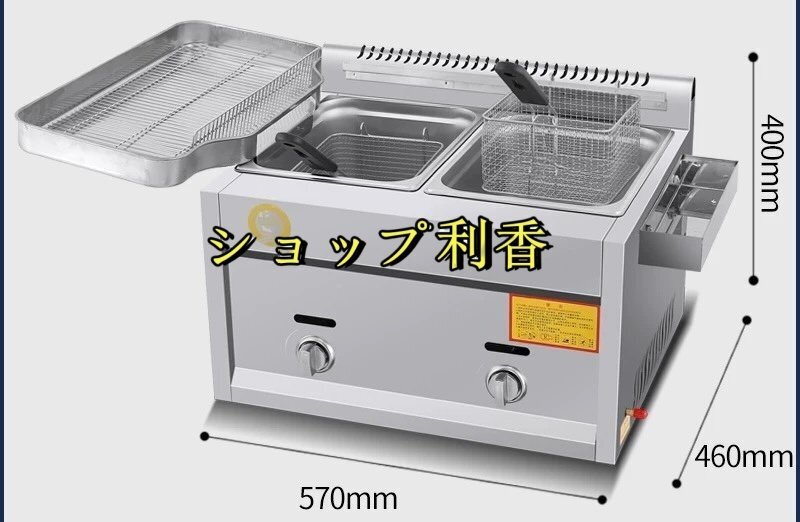 業務用ガスディープフライヤー 8L x 2 ステンレス鋼デュアルタンクガスディープフライヤー 2 つのバスケットと蓋付き ステンレス鋼 8Lx2
