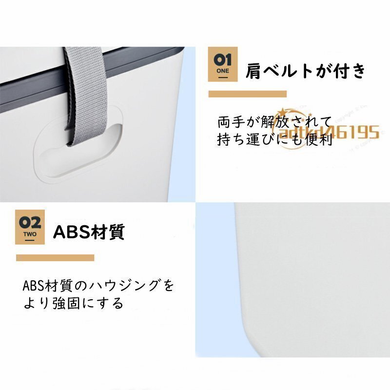【幅広く適用】車中泊、オートキャンピング、釣り、バーベキュー、運動会、自宅、災害時などのシーンに大活躍です。【15L大容量】550mlのペットボトルは縦に入ります。従来の車載冷蔵庫より便利性が一層改善されました。330ml缶が約15本/550mlペットボトルが縦に約9本入ります。ショルダーストラップ付きで持ち運びも便利です。