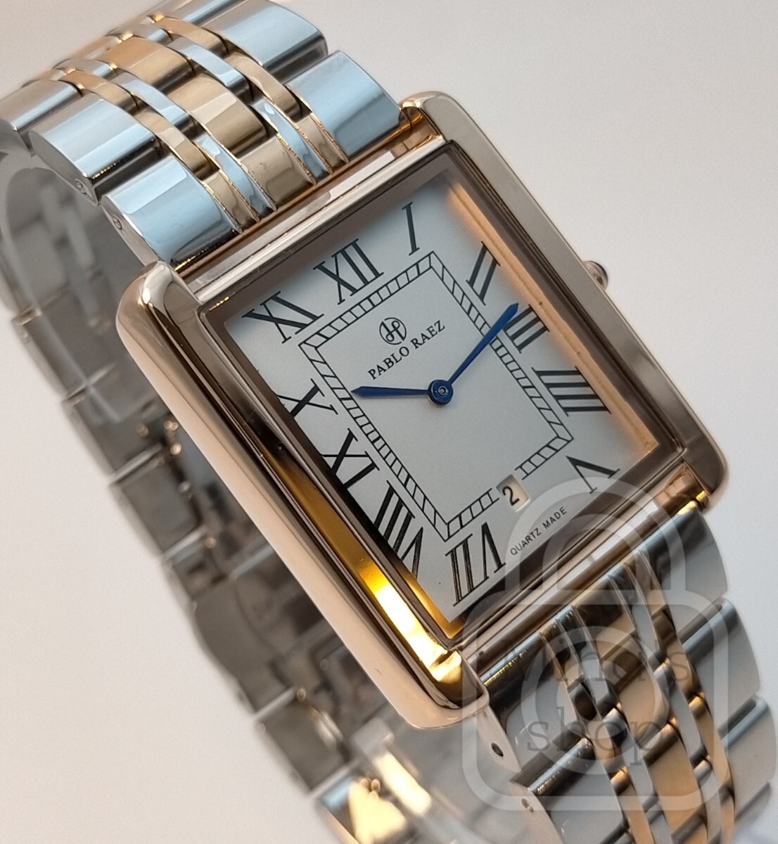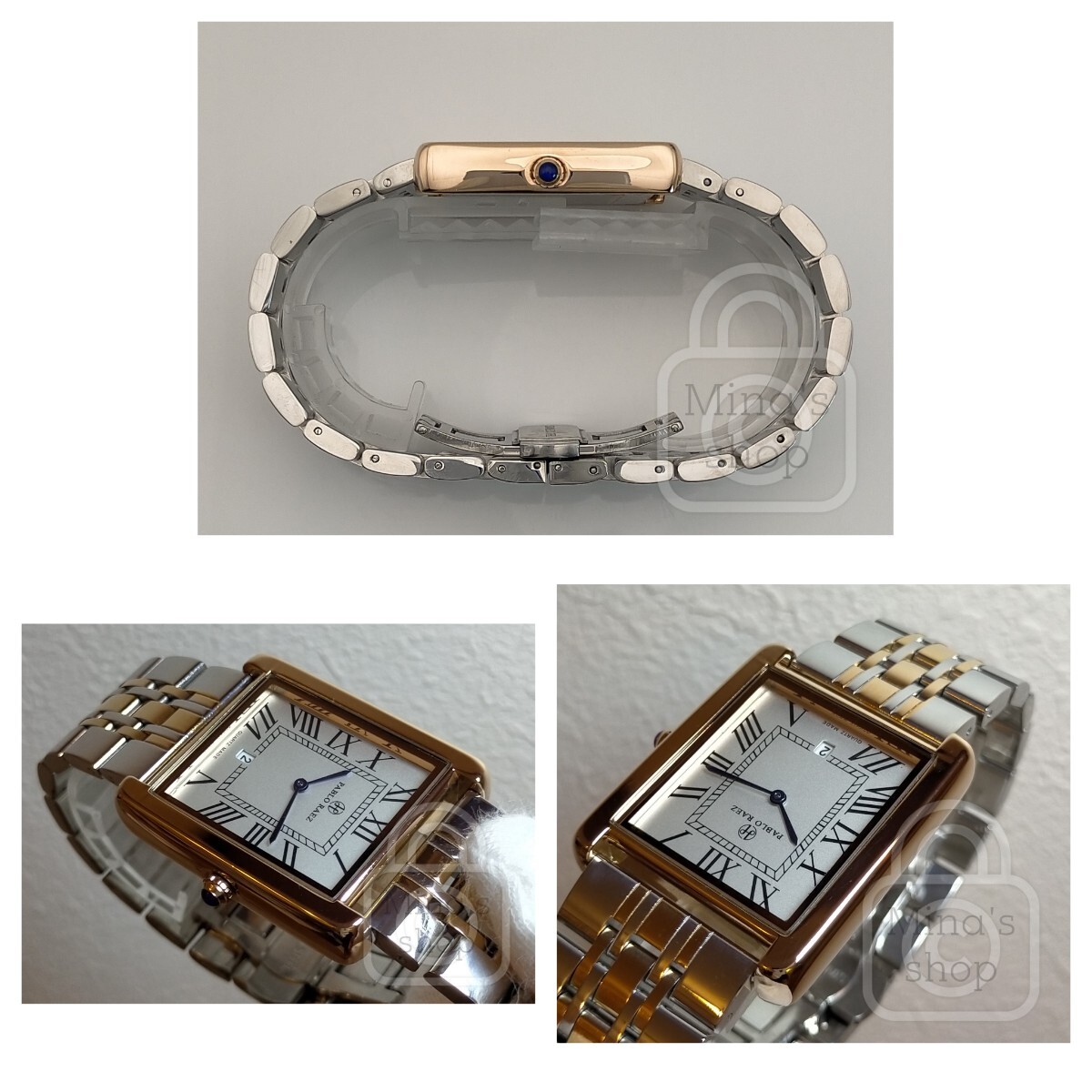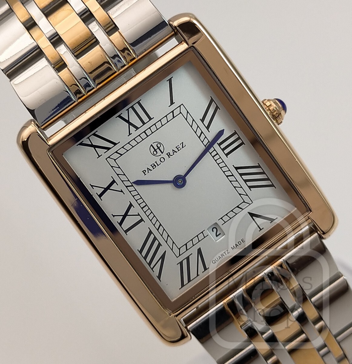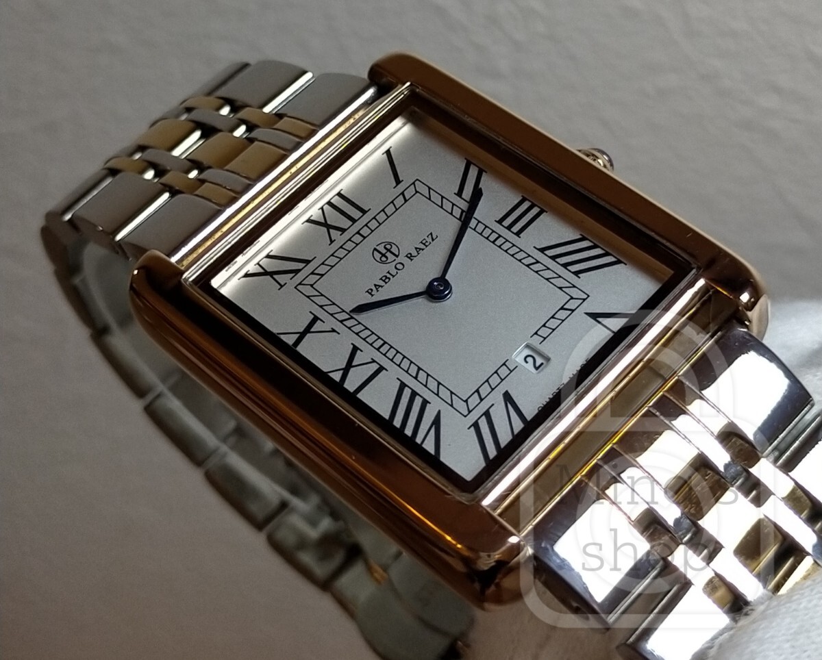 翻ってこちらは美しいローズゴールドに上品なパールホワイト文字盤、そしてブレスは7連かつコンビタイプと、程良くラグジュアリー感が漂うまさにスマートレクタングルに仕上がっております。