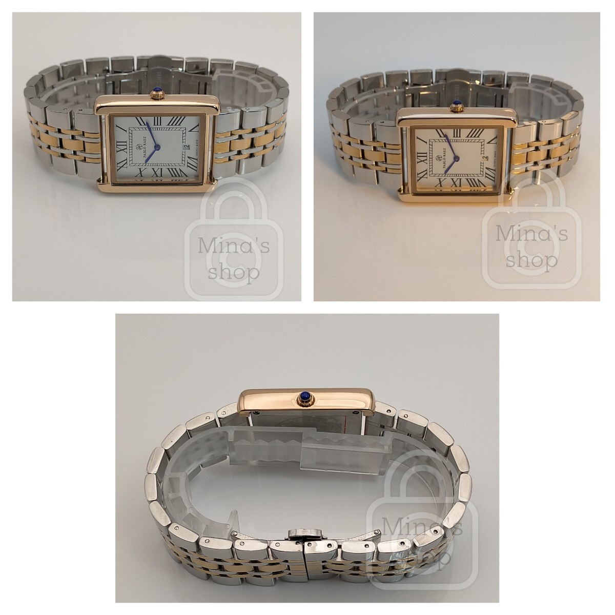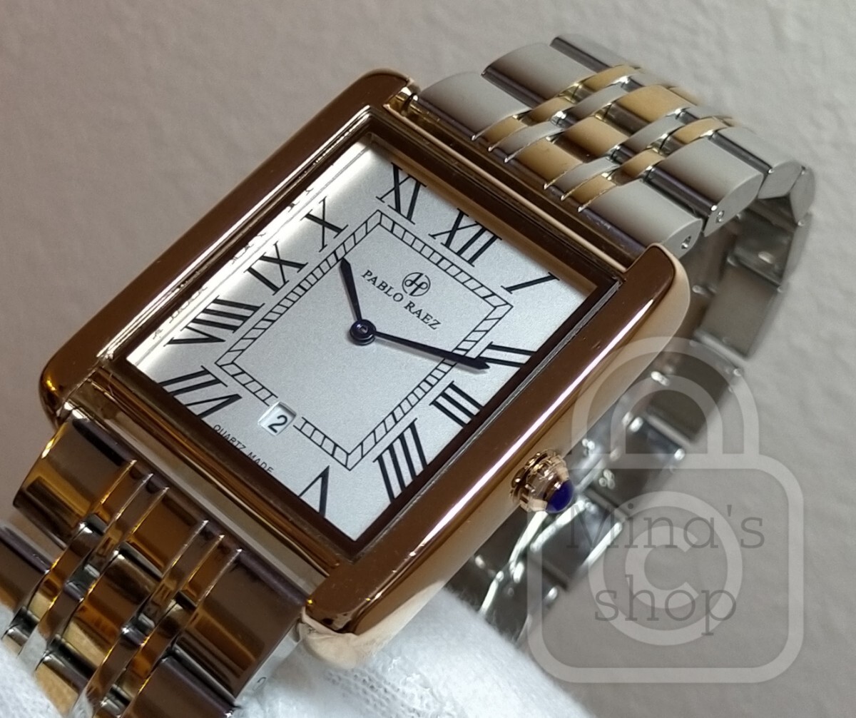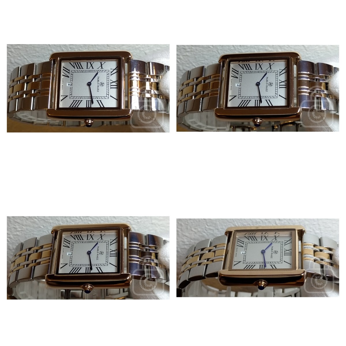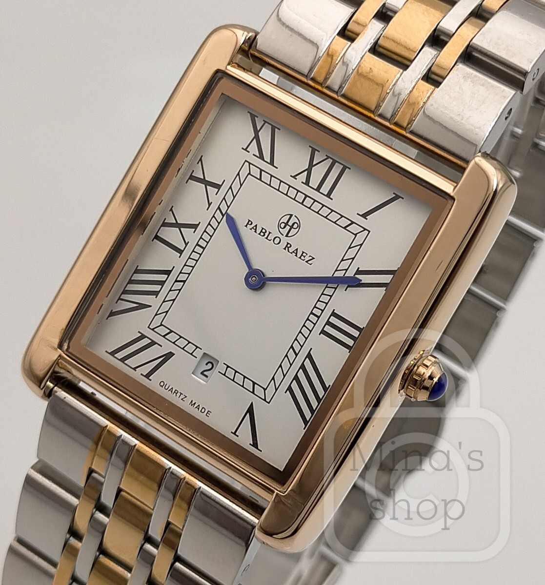 翻ってこちらは美しいローズゴールドに上品なパールホワイト文字盤、そしてブレスは7連かつコンビタイプと、程良くラグジュアリー感が漂うまさにスマートレクタングルに仕上がっております。