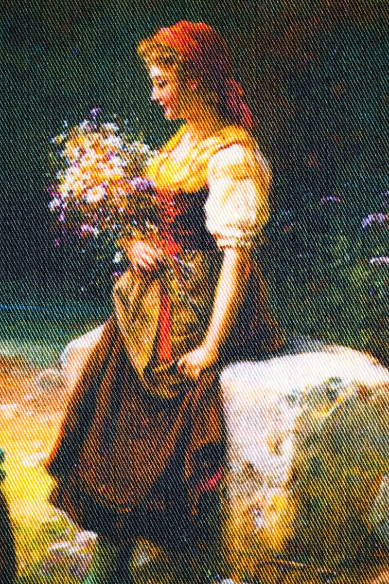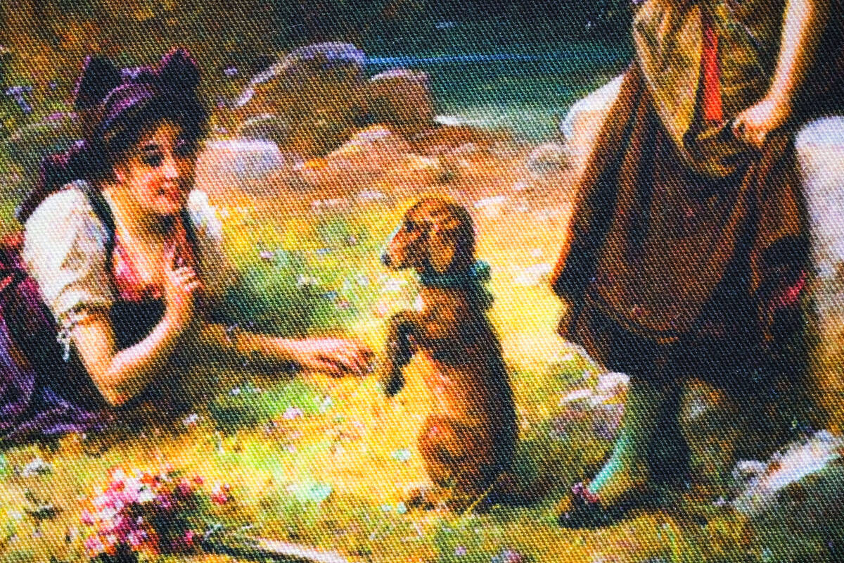 はぎれ ハンス・ザッカ 犬 女性 15×20 小 コットン チェコ プリント生地 ミニパネル生地