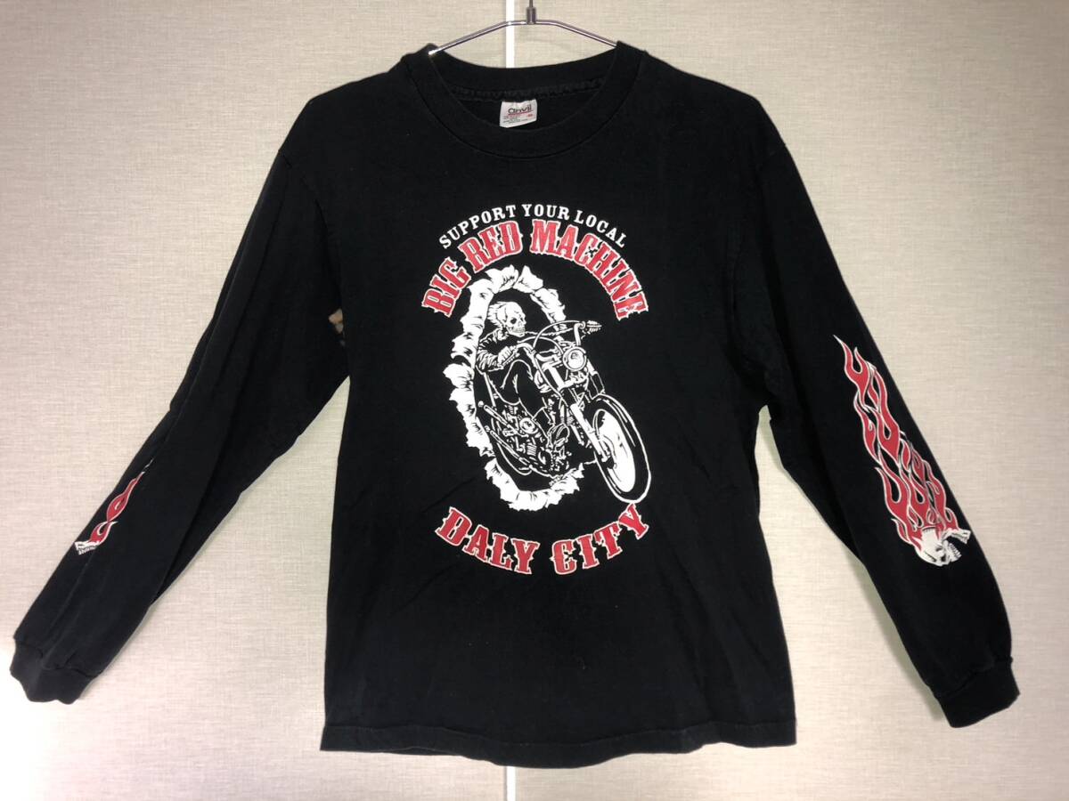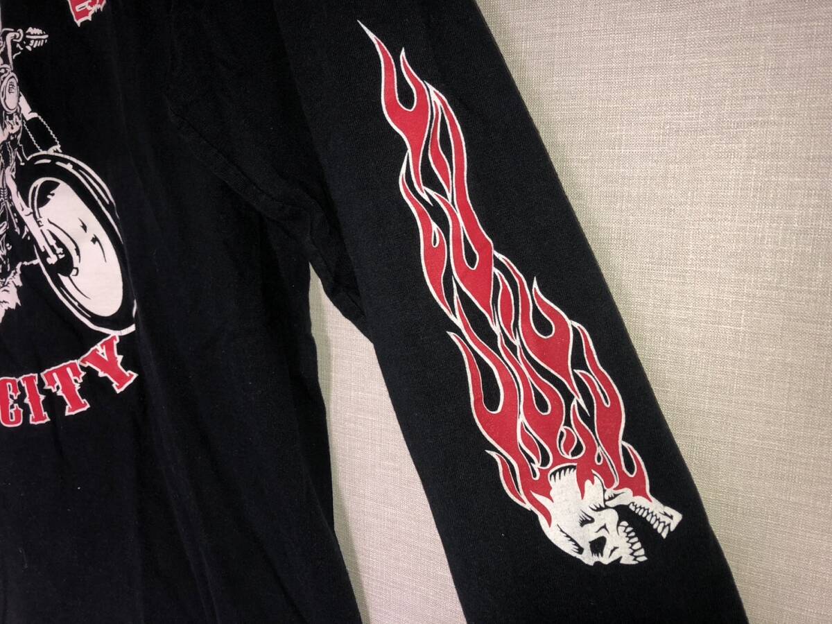81HELLS ANGELS SUPPORT ロンTシャツ サイズM ブラック ハーレーダビッドソンヘルズエンジェルスMCギャンクファイアーパターンUSED古着即決