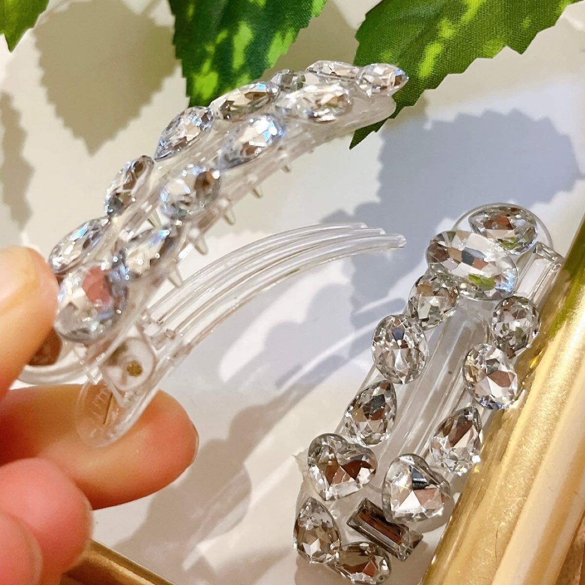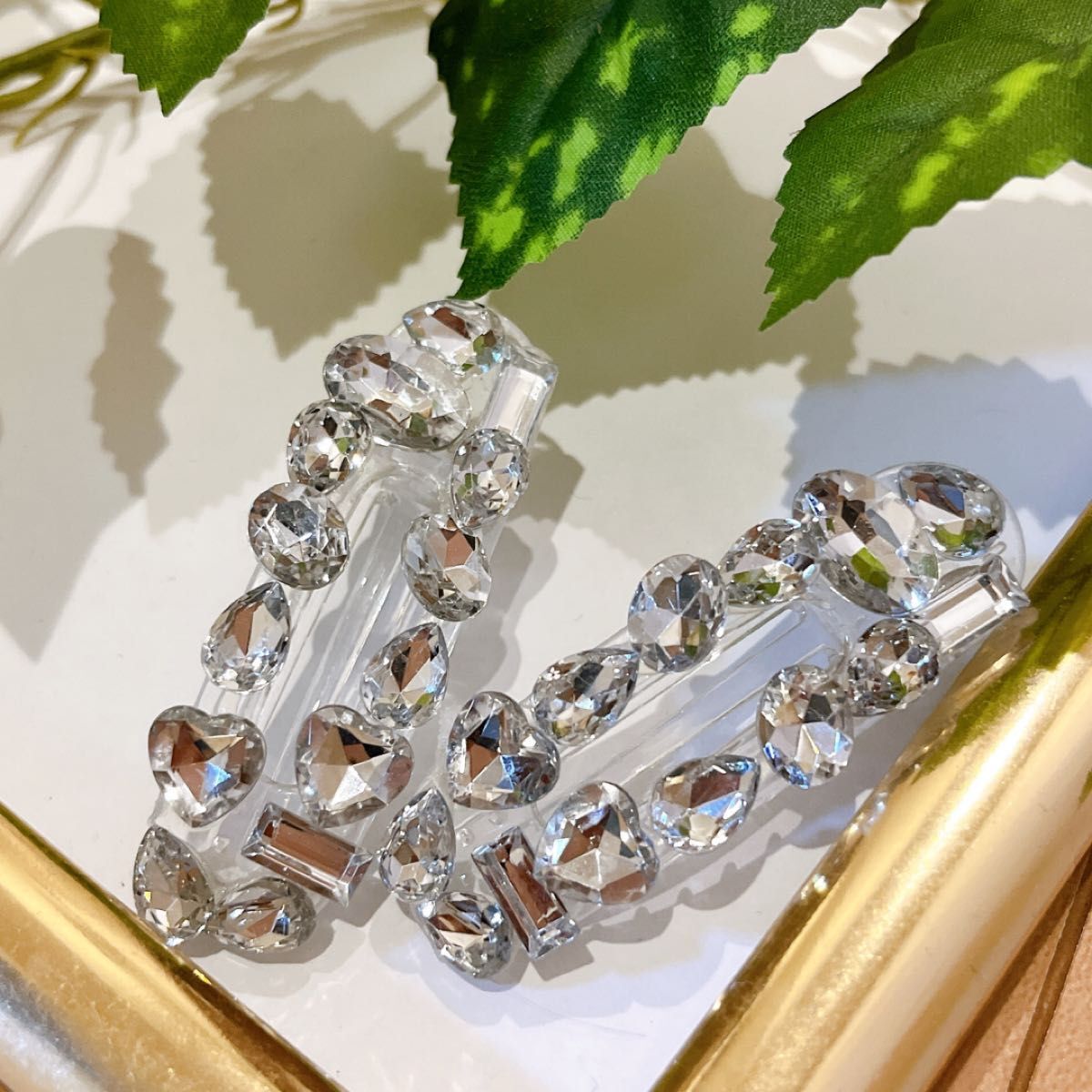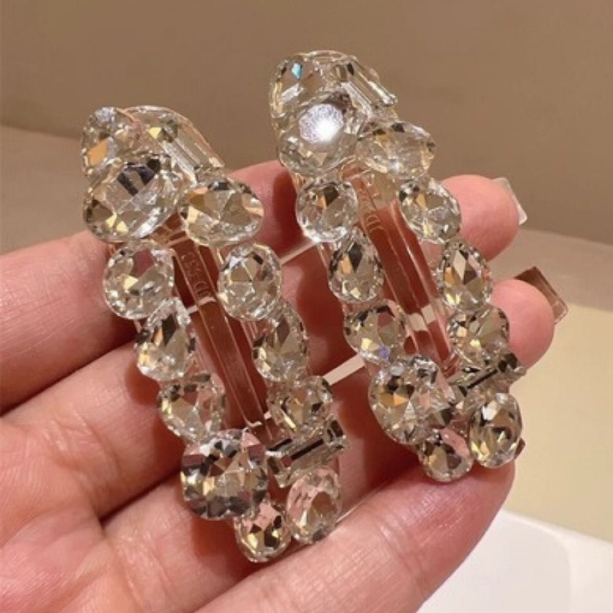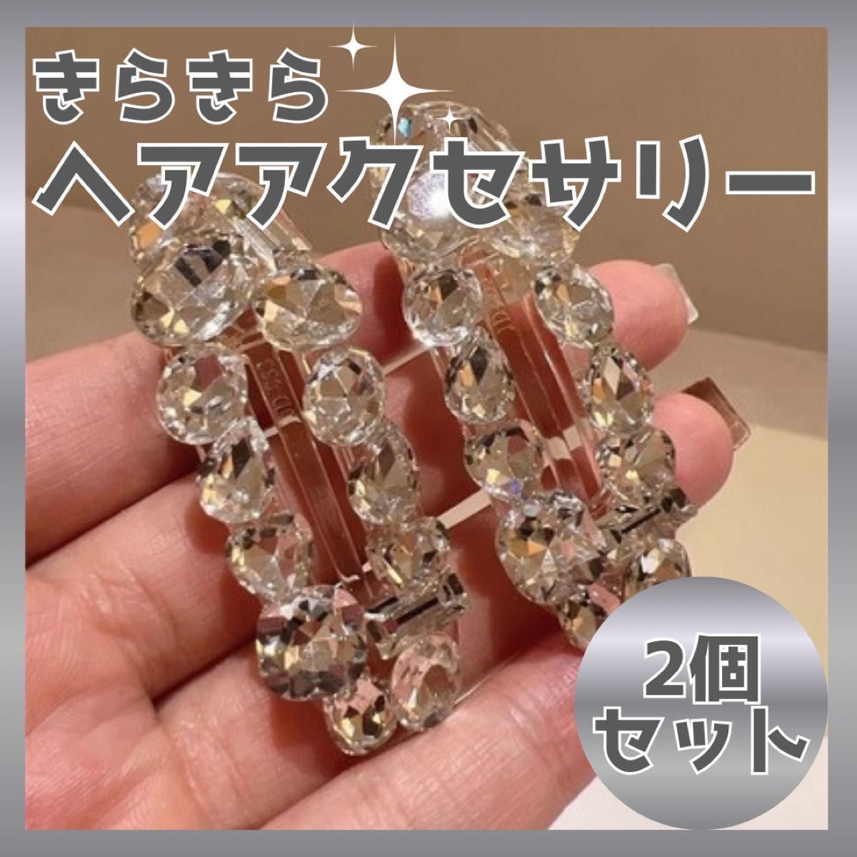 ヘアクリップ 2個セット ヘアアクセサリー 髪飾り ラインストーン 大ぶり 大きめ キラキラ おしゃれ きれいめ シンプル 上品