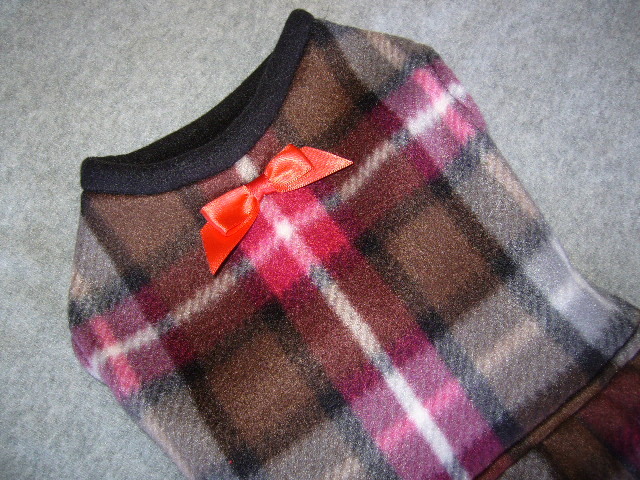 S小型犬赤&ブラウンタータンフリースワンピ
