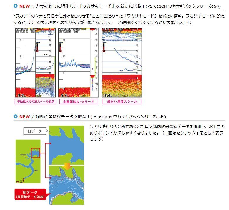 PS-610C/PS-611CNIIワカサギパックにはワカサギに最適なセッティングに設定できる“ワカサギモード”を搭載。