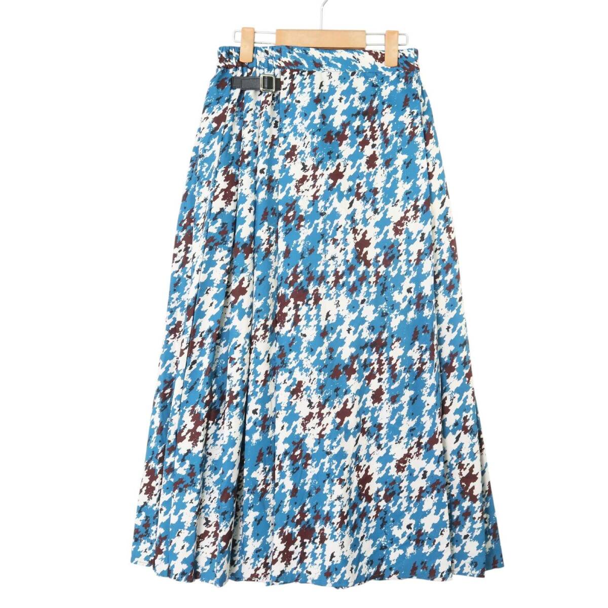 【新品 未使用】 Bou Jeloud ブージュルード ツイード風★ 総柄 プリーツ マキシ ロング スカート Sz.38 レディース