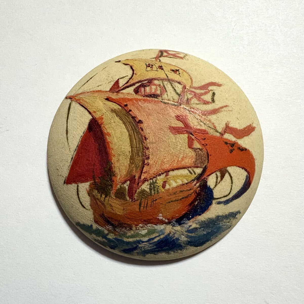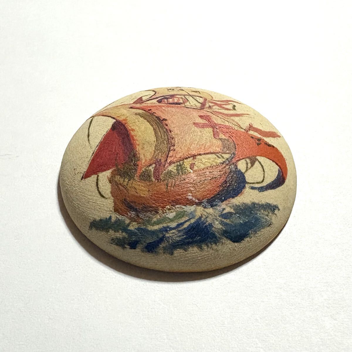 陶器の帆船の帯留めです。