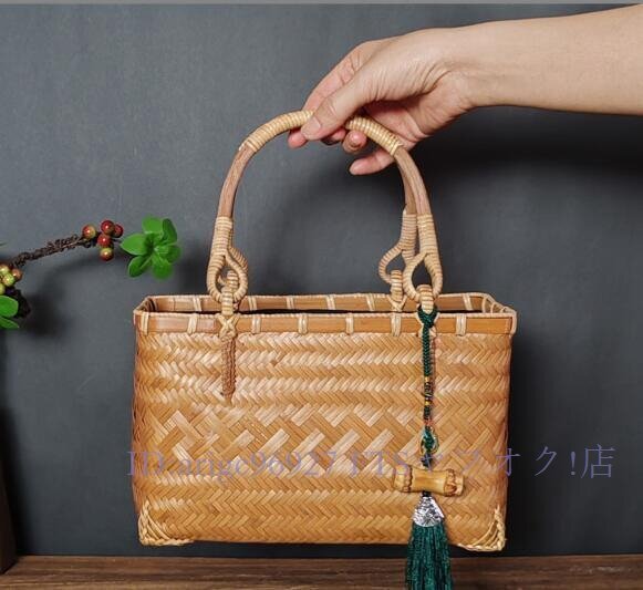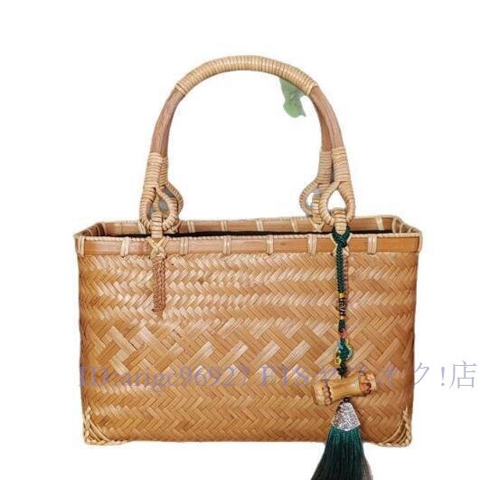 ★新品かごバッグ 竹かご 網代バッグ トートバッグ ハンドバッグ 竹編みバッグ 内布付き レディース 花火大会 お盆 黄色