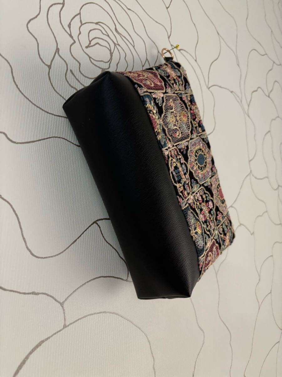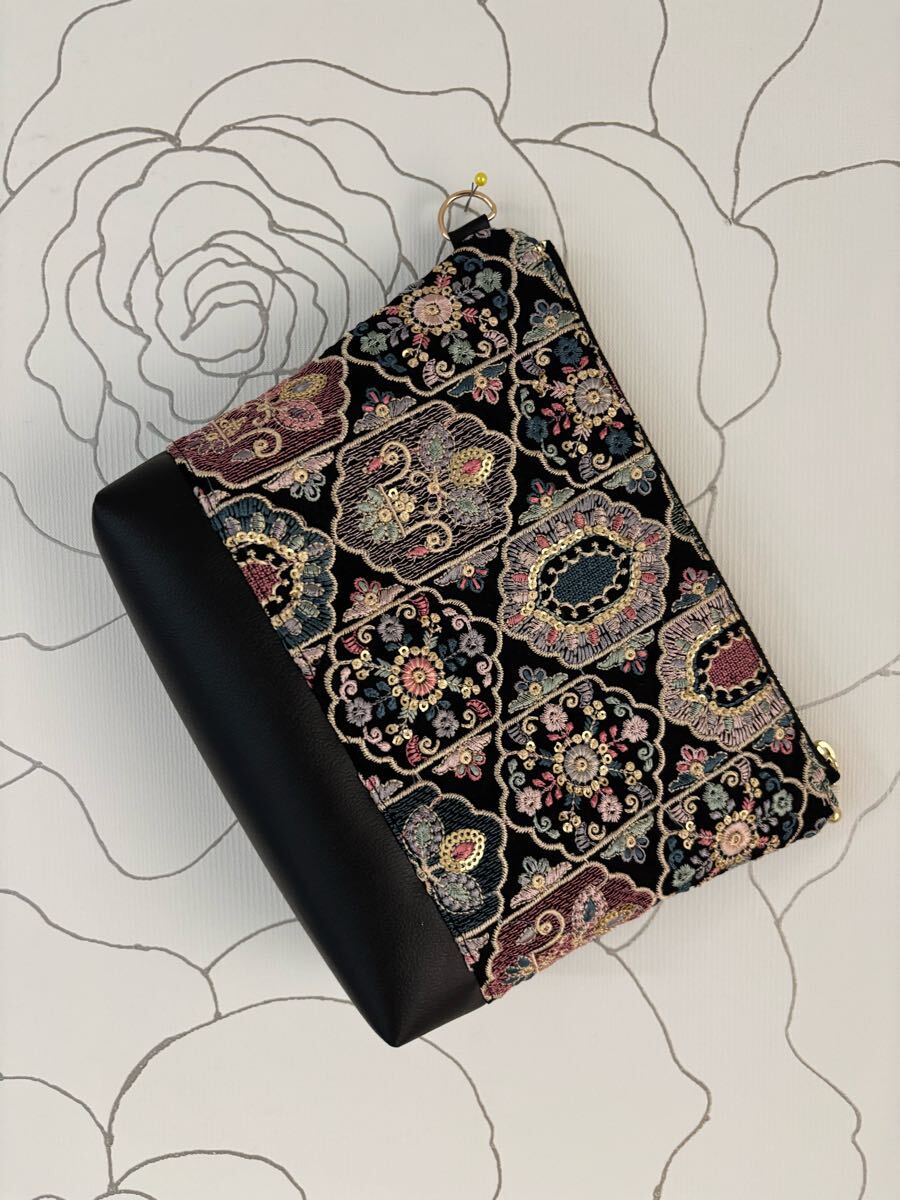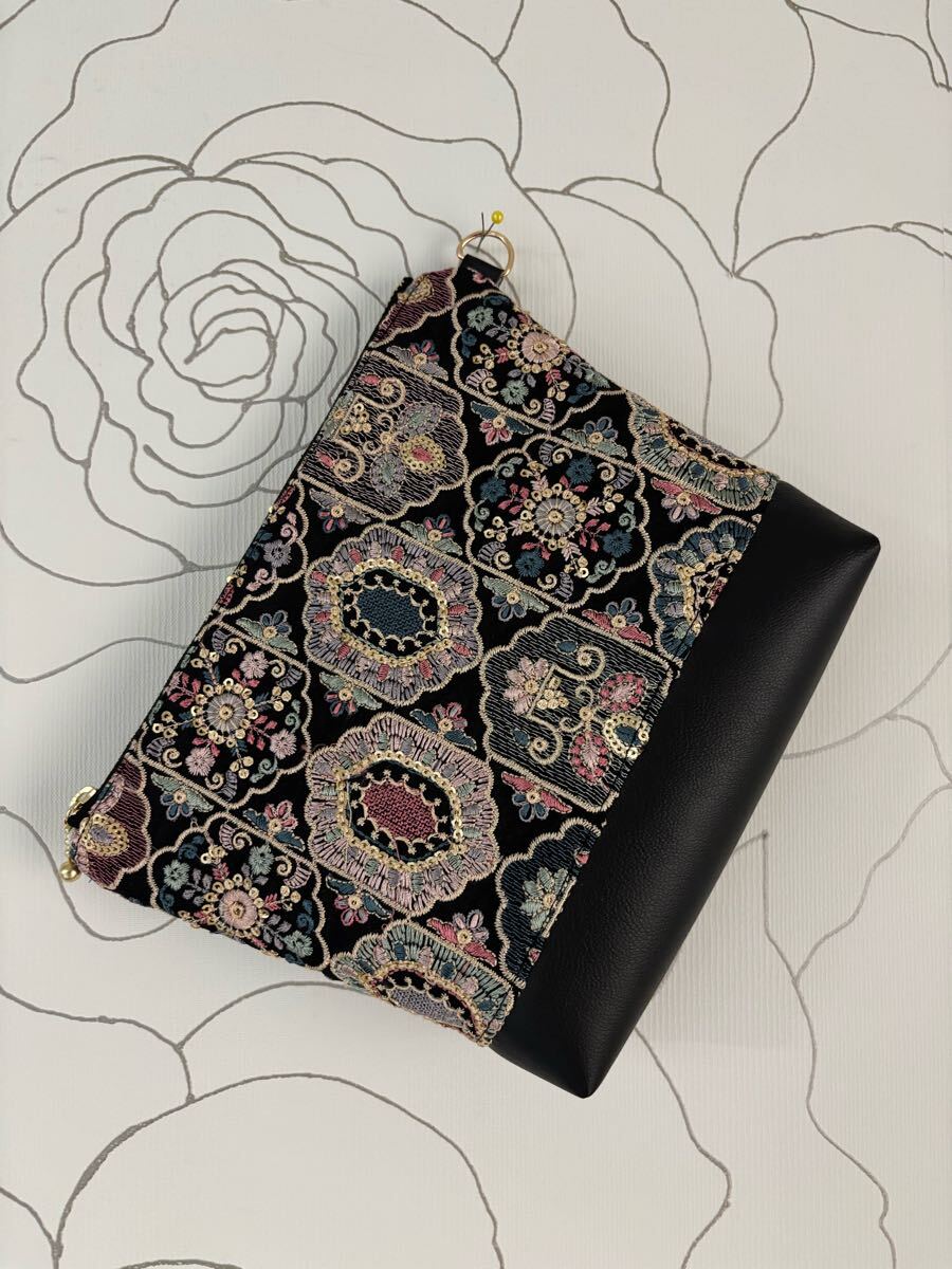 大人気のインド刺繍生地と合皮を合わせて大きめポーチを作りました
