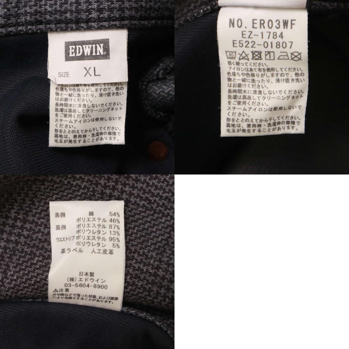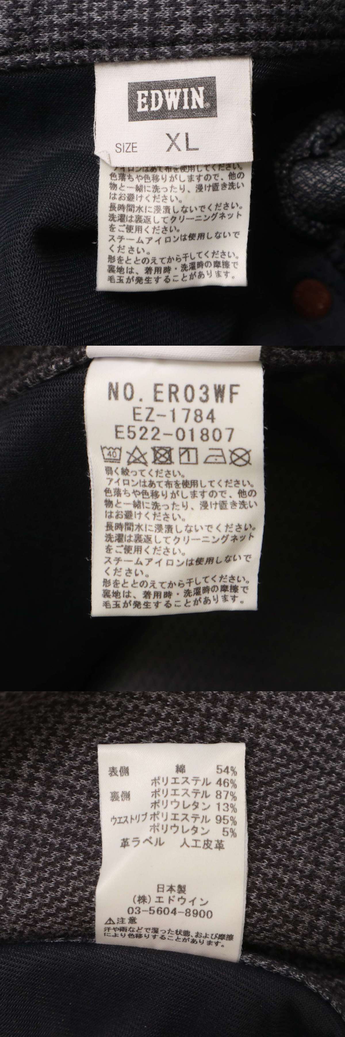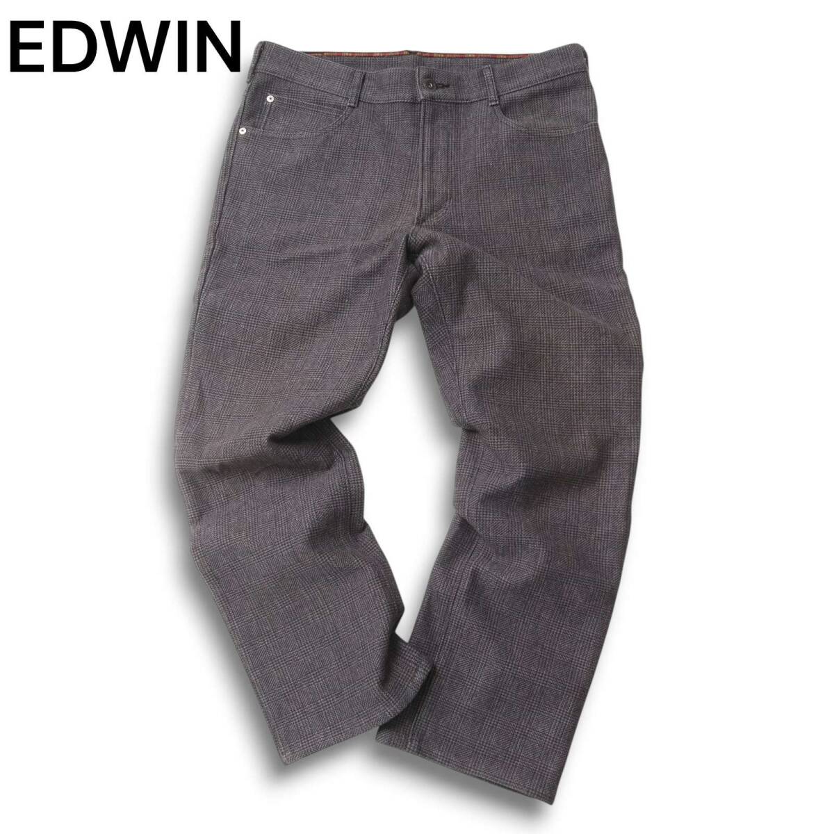 EDWIN エドウィン ER03WF ジャージーズ WILD FIRE 防風 裏起毛 ストレッチ チェック パンツ Sz.XL メンズ 灰 大きい バイク