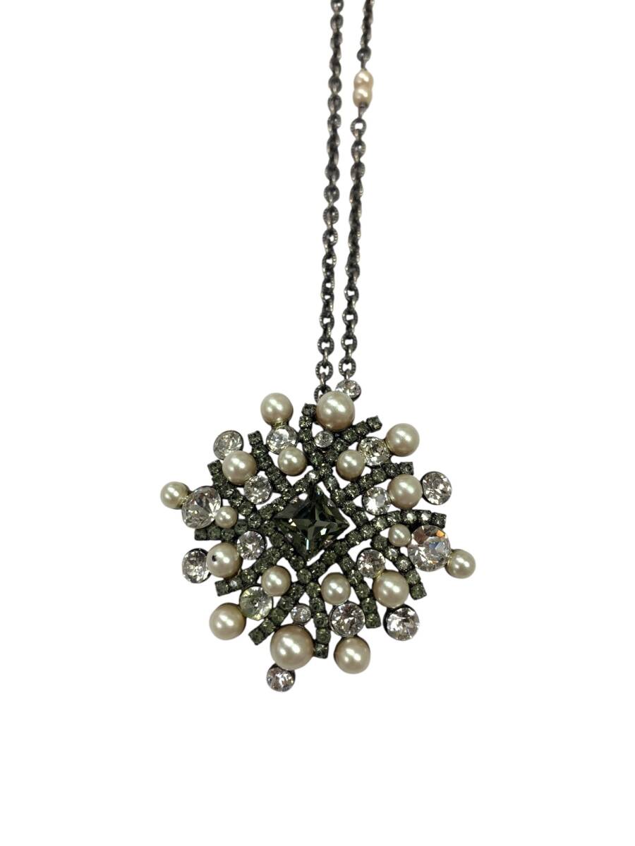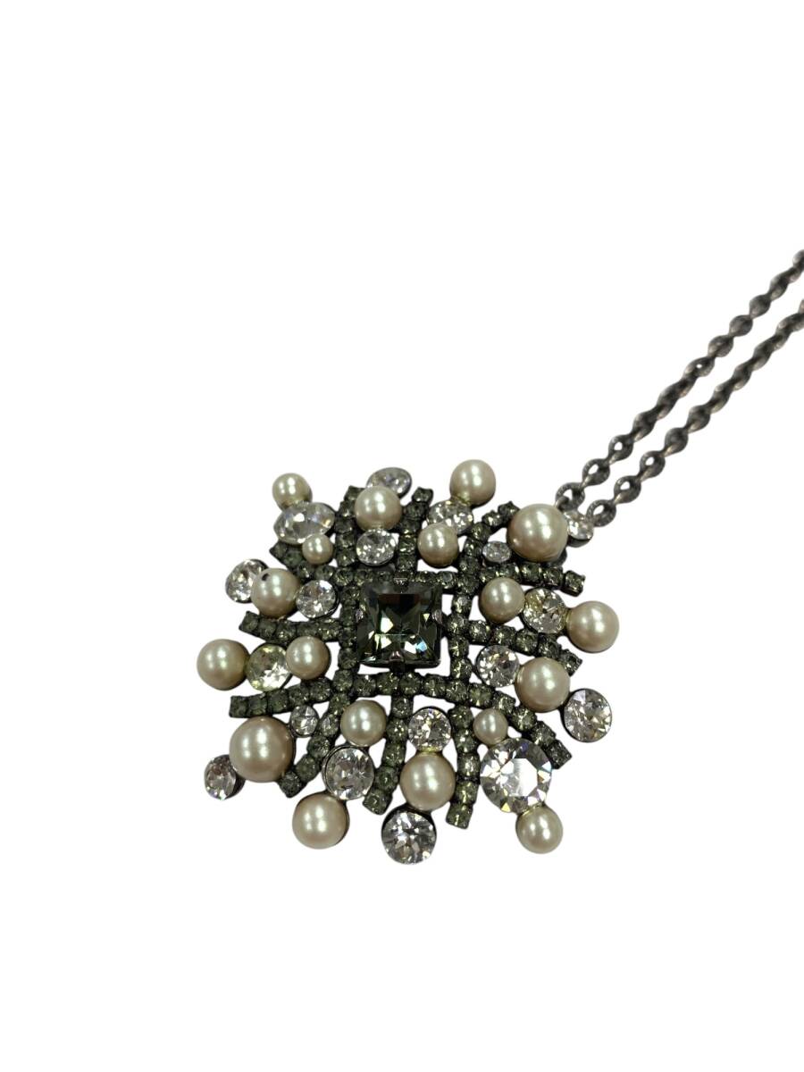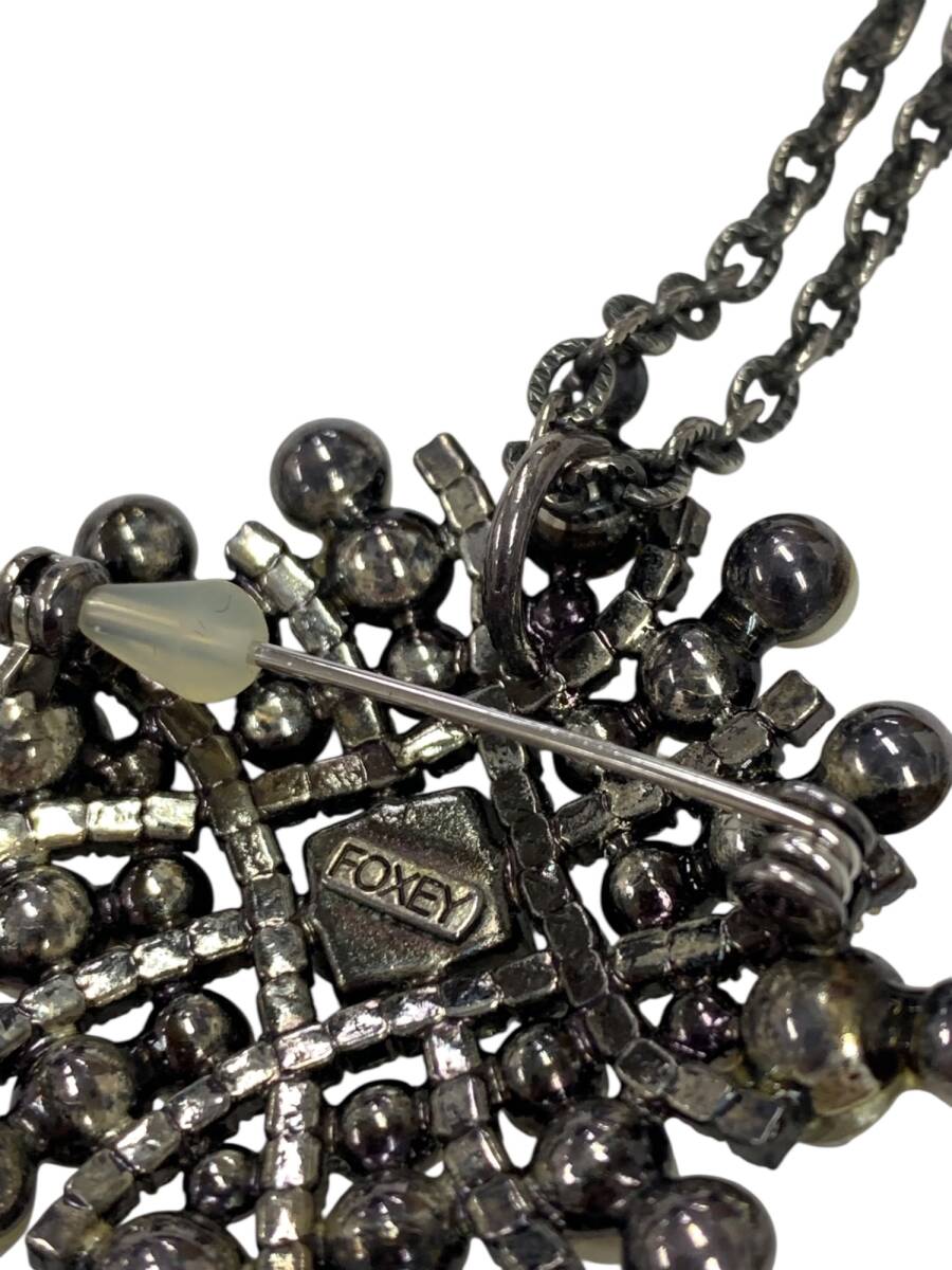 FOXEY フォクシー ネックレス グレー パール ラインストーン ブローチ2WAY ITYE4KWX6B3L