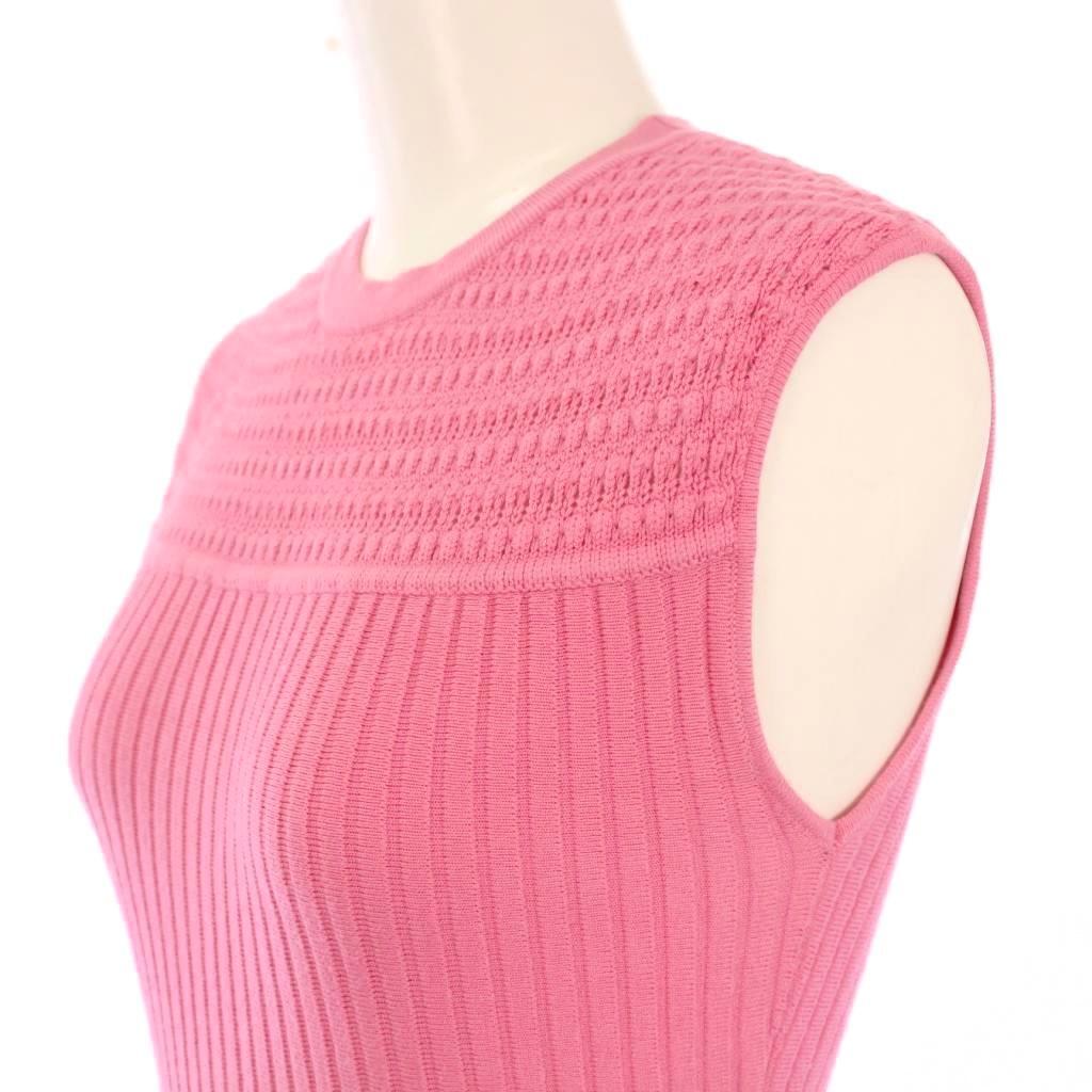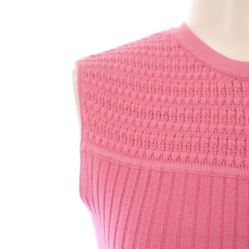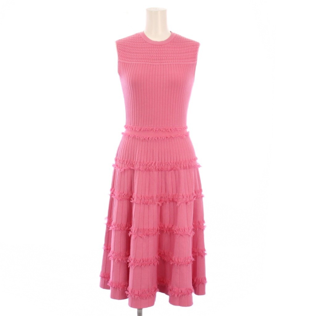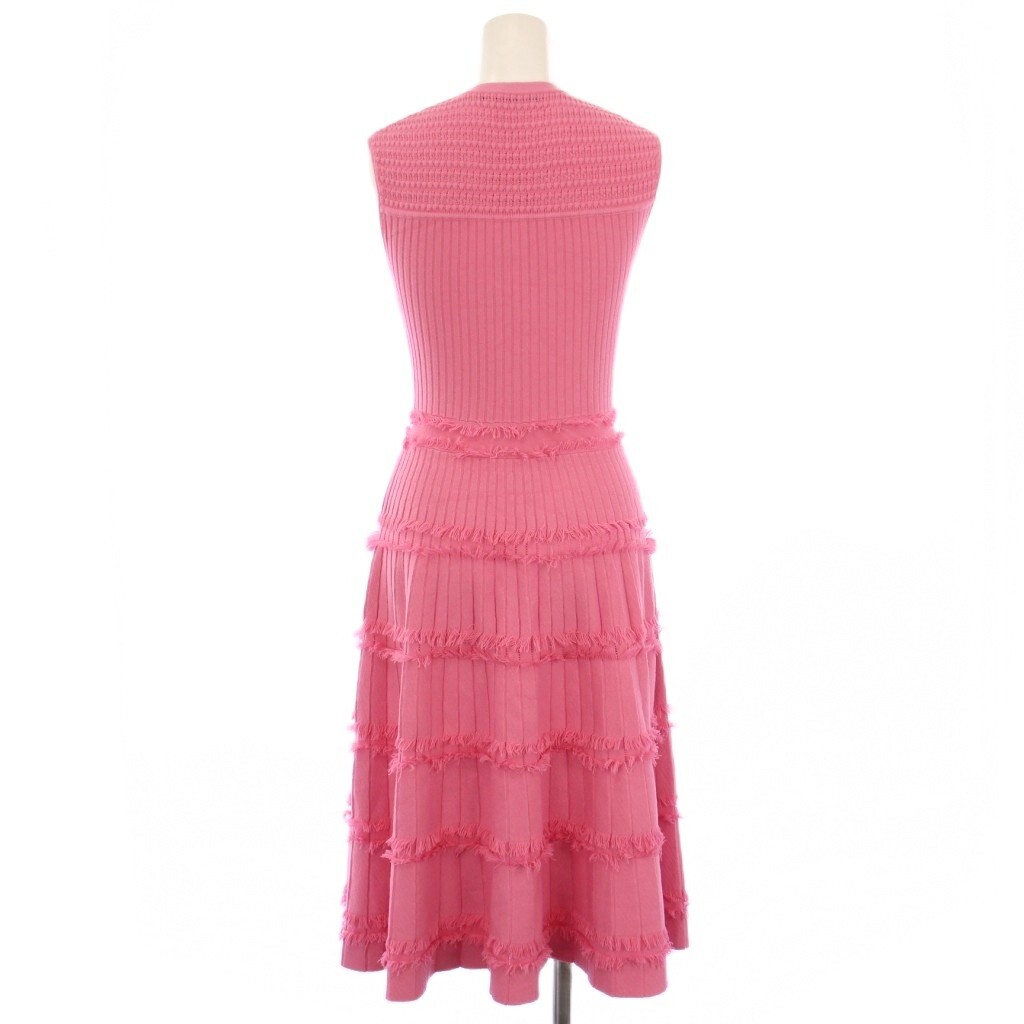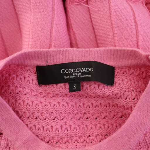 コルコバード CORCOVADO フレアワンピース ニット ひざ丈 ノースリーブ クルーネック ストレッチ フリンジ S ピンク /BB レディース