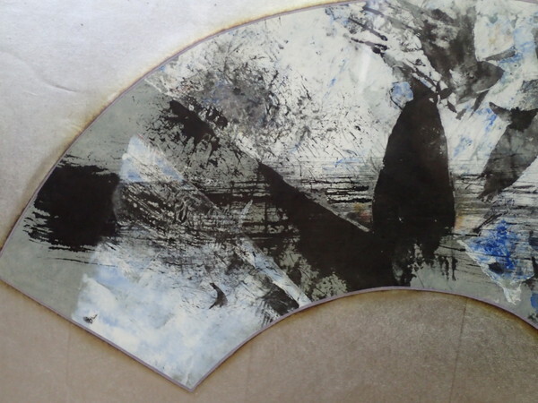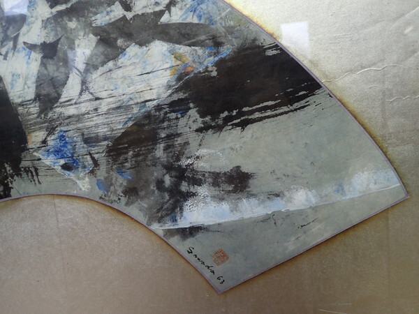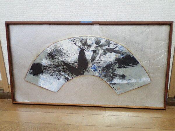 O3☆【模写】 沢田哲郎 紙本 抽象画 扇面 額装 検) 抽象 澤田哲郎 (120)