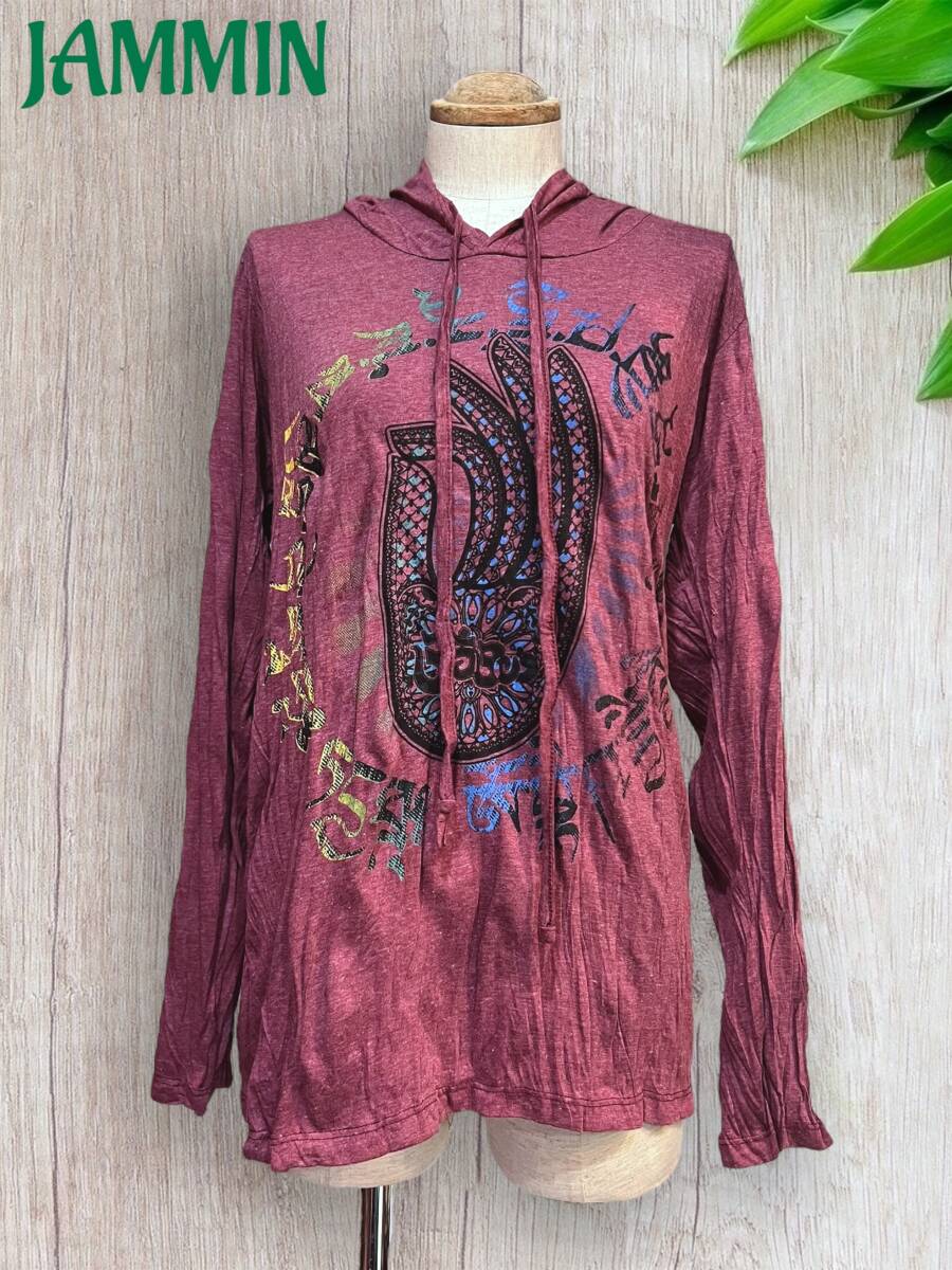 アジアン/エスニック/サイケ/ヒッピー/個性派/ロンT/長袖/Tシャツ/ロングスリーブTシャツ/フード付き/
