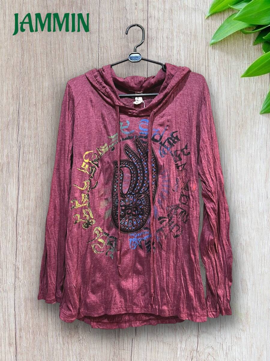 仏陀の手ロンT フード付き アジアン エスニック ヒッピー 個性派
