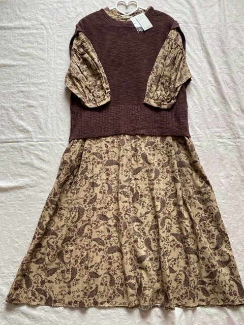 マネキン買いしたペイズリーフラワー柄ワンピースオレンジ、