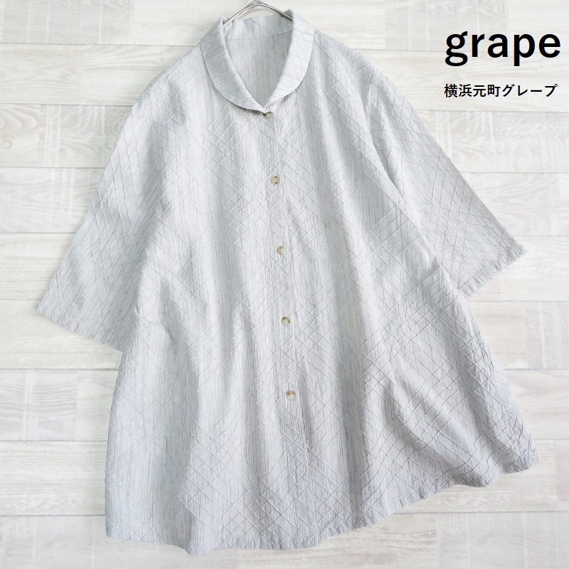 grape 横浜元町グレープ◆レディース ハケメコットン バイアスピンタック 6分袖 羽織り チュニック ブラウス*gr467