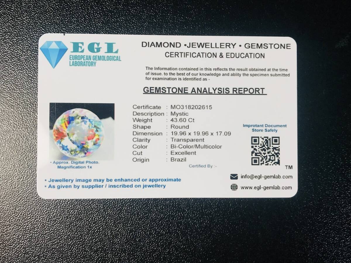 虹色 天然 ミスティッククオーツ 43.6Ct mystic quartz ブラジル産 宝石 ルース 鑑別付き gemustone loose
