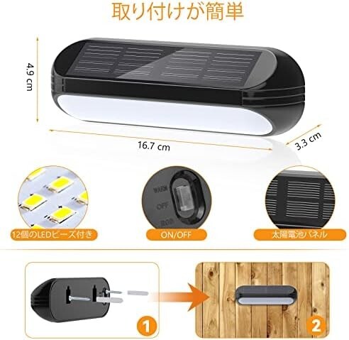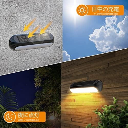 • 【太陽光で充電 長時間点灯】45度の傾斜角のデザインと高品質な単結晶ソーラーパネルで、太陽光の吸収と変換効率を最大限に高めています。さらに、大容量600mAhバッテリーを搭載しており、フル充電後、10時間以上も点灯できます。そのため、一晩中点灯させることができ、突然消える心配ありません。