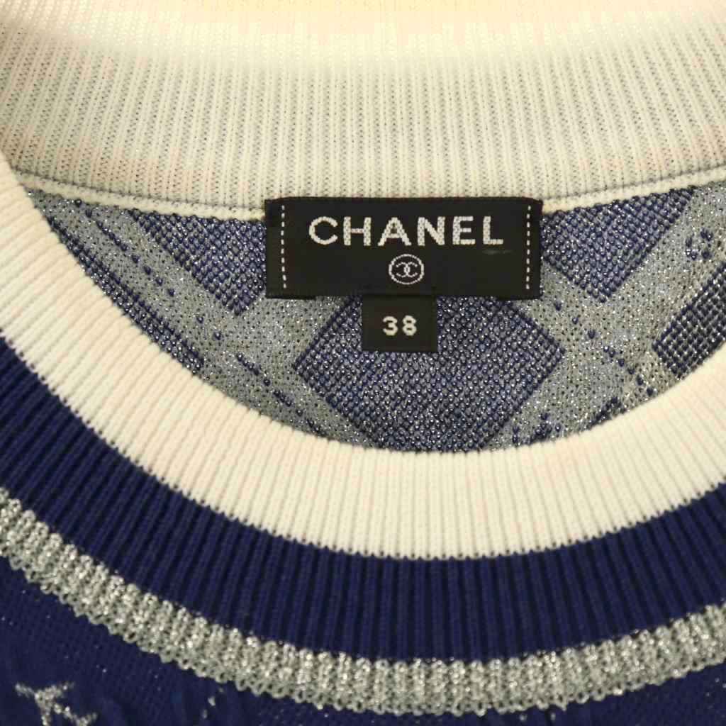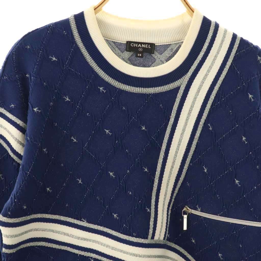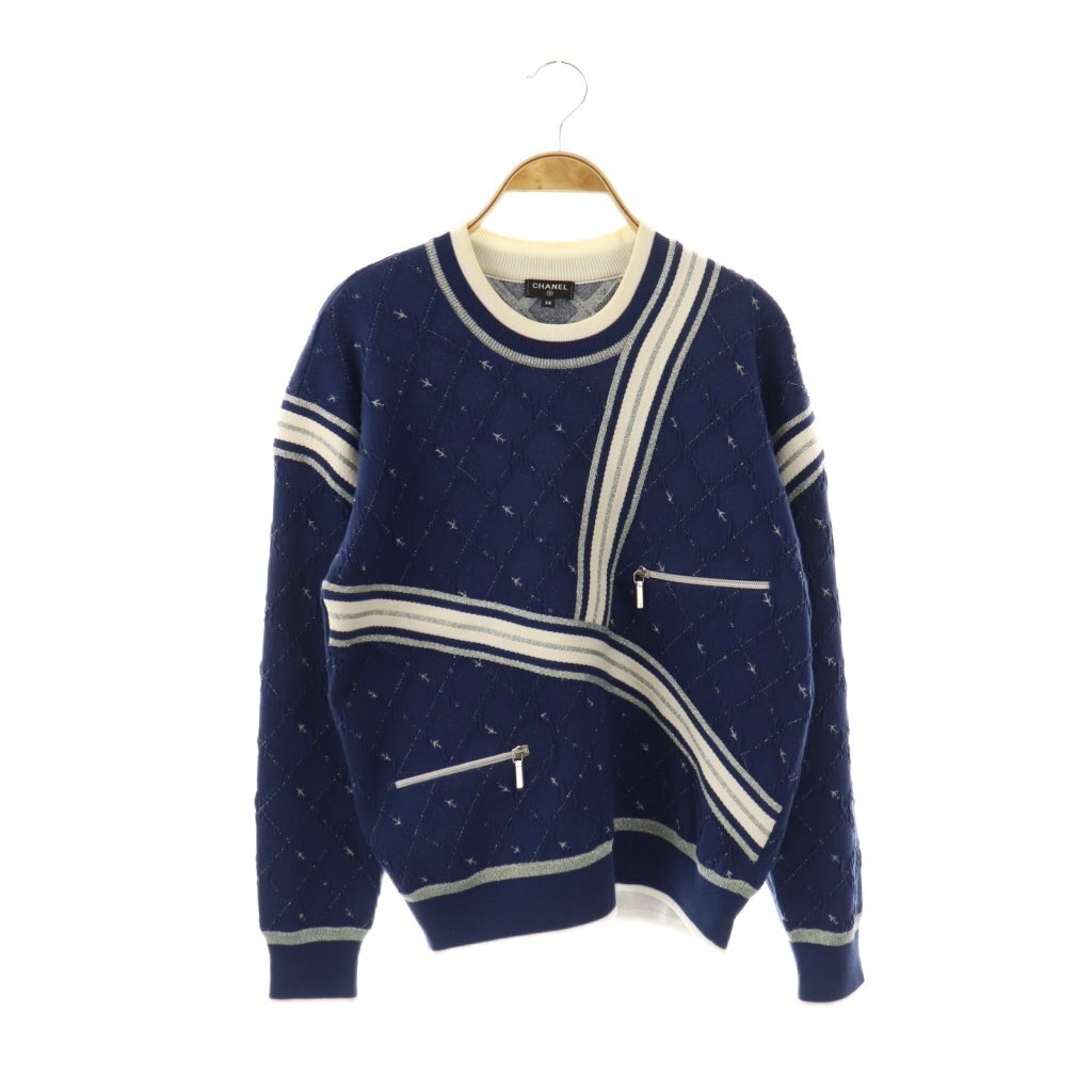 シャネル CHANEL エアライン ジャガードニットプルオーバー セーター 長袖 38 ネイビー P54068K07043 /HK ■OS レディース