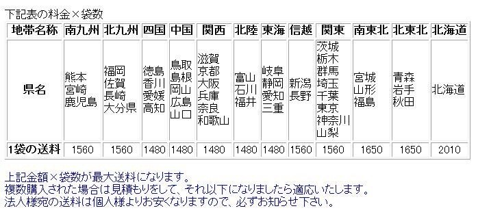 3辺の合計80cm以内・重量5kg以内は780円(税込)、100cm以内・重量10kg以内は980円(税込)、130cm以内・重量20kg以内は1400円(税込)★法人宛ての場合、3袋以上から法人料金で送料をお見積りします。