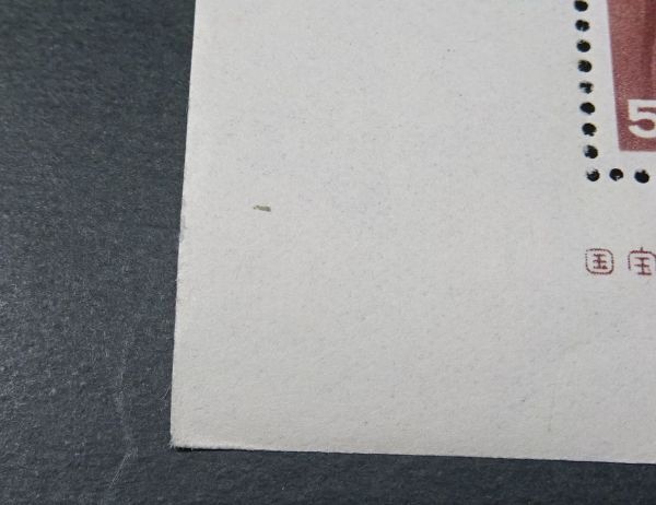 ◆商品説明◆ | ◆昭和すかしなし「中宮寺菩薩像」50.00円小型シート(未使用NH・裏糊有り) 1951年5月1日発行~ ◆糊ツヤ良好ですが、年代物のためヤケ・シミ・シワ等がありますので、画像にてご確認ください。 |