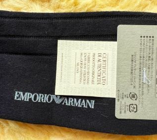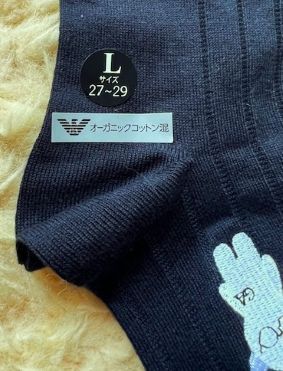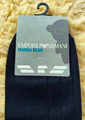 ●タグシールも付いたままの、未使用、新品のエンポリオアルマーニのオーガニックコットン混マンガベア刺繍 メンズ黒色×白色 ショートリブソックスです