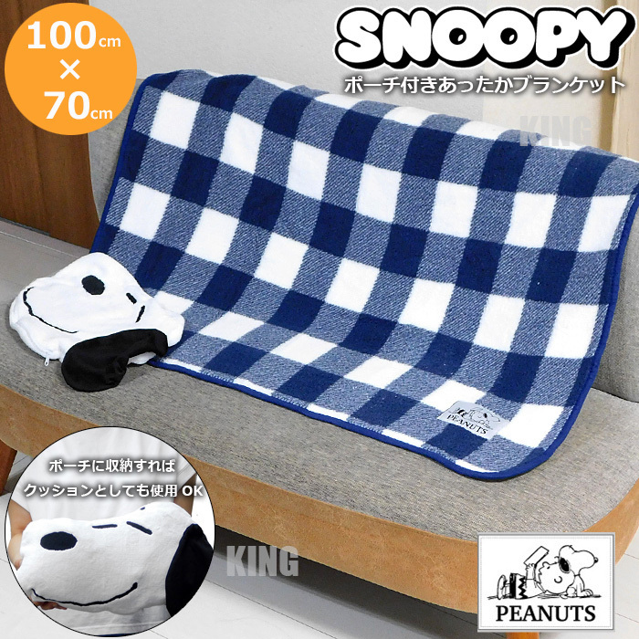 送料無料 新品 スヌーピー フェイス型ポーチ付き ブランケット ひざ掛け ひざかけ 膝掛け レディース キッズ SNOOPY PEANUTS 防寒具 B