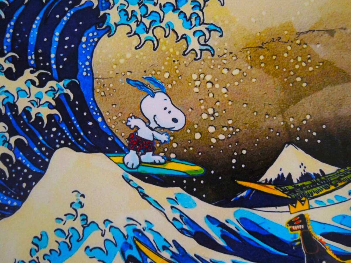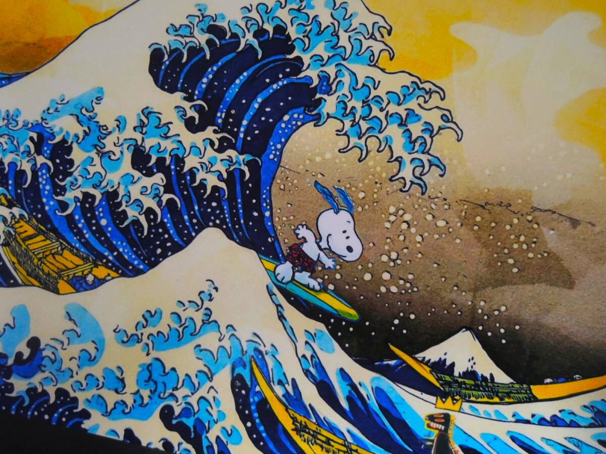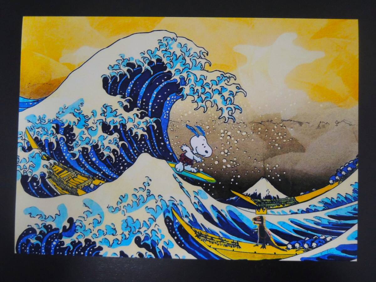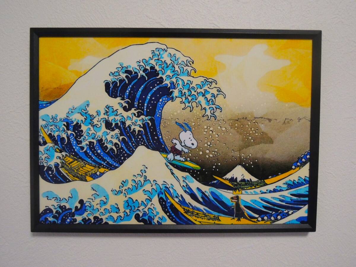 A4 額付き ポスター 葛飾北斎 スヌーピー 波 バスキア 富士山 サーフィン 浮世絵 snoopy surf 海 hokusai