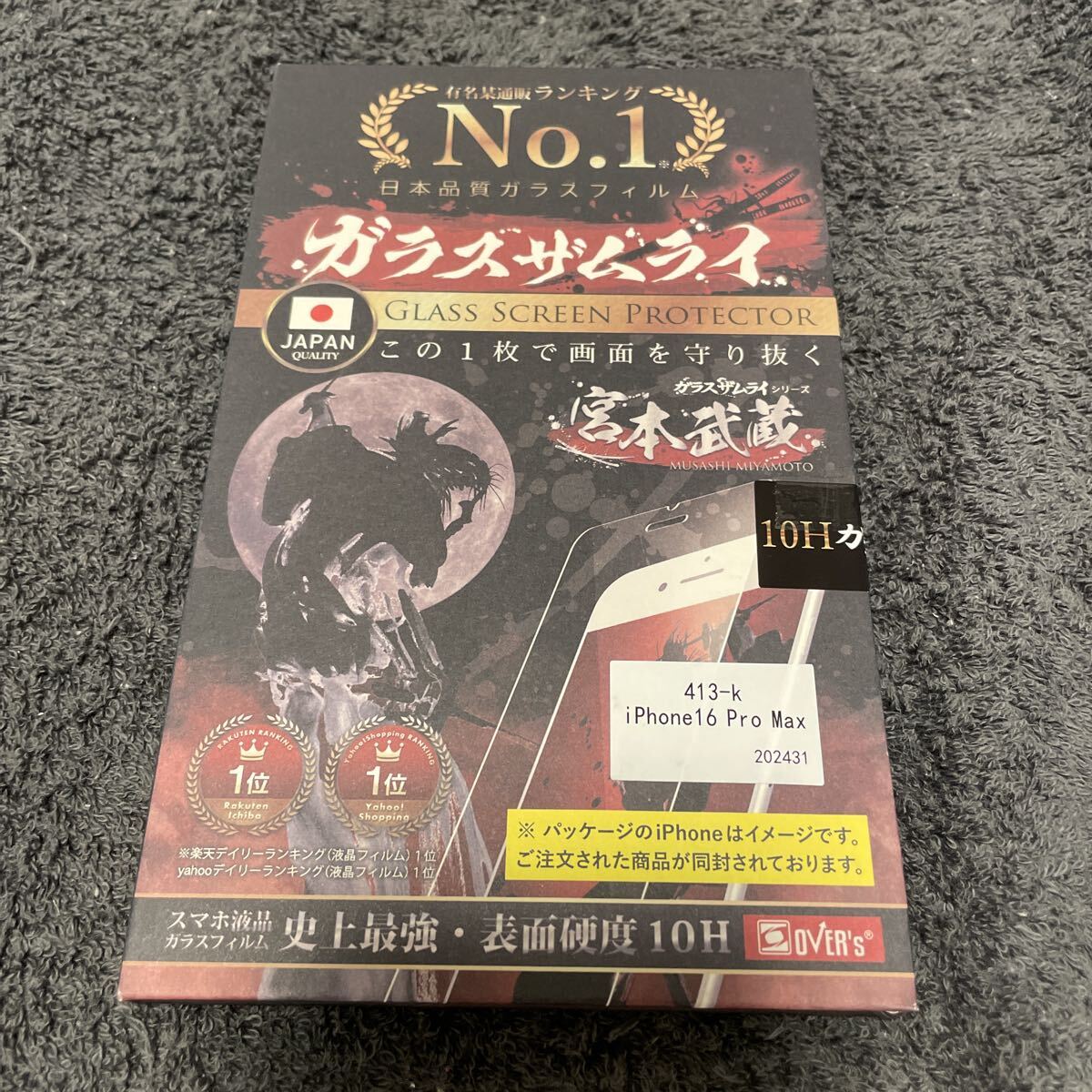 ガラスザムライ iPhone 17 Pro Max 用 iPhone 16 Pro Max 用 ガラスフィルム 硬度 10H 日本製ガラス素材 強化ガラス 保護フィルム 米軍MIL規格 いPhone 413-k 439-k