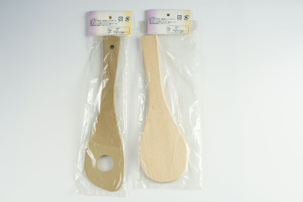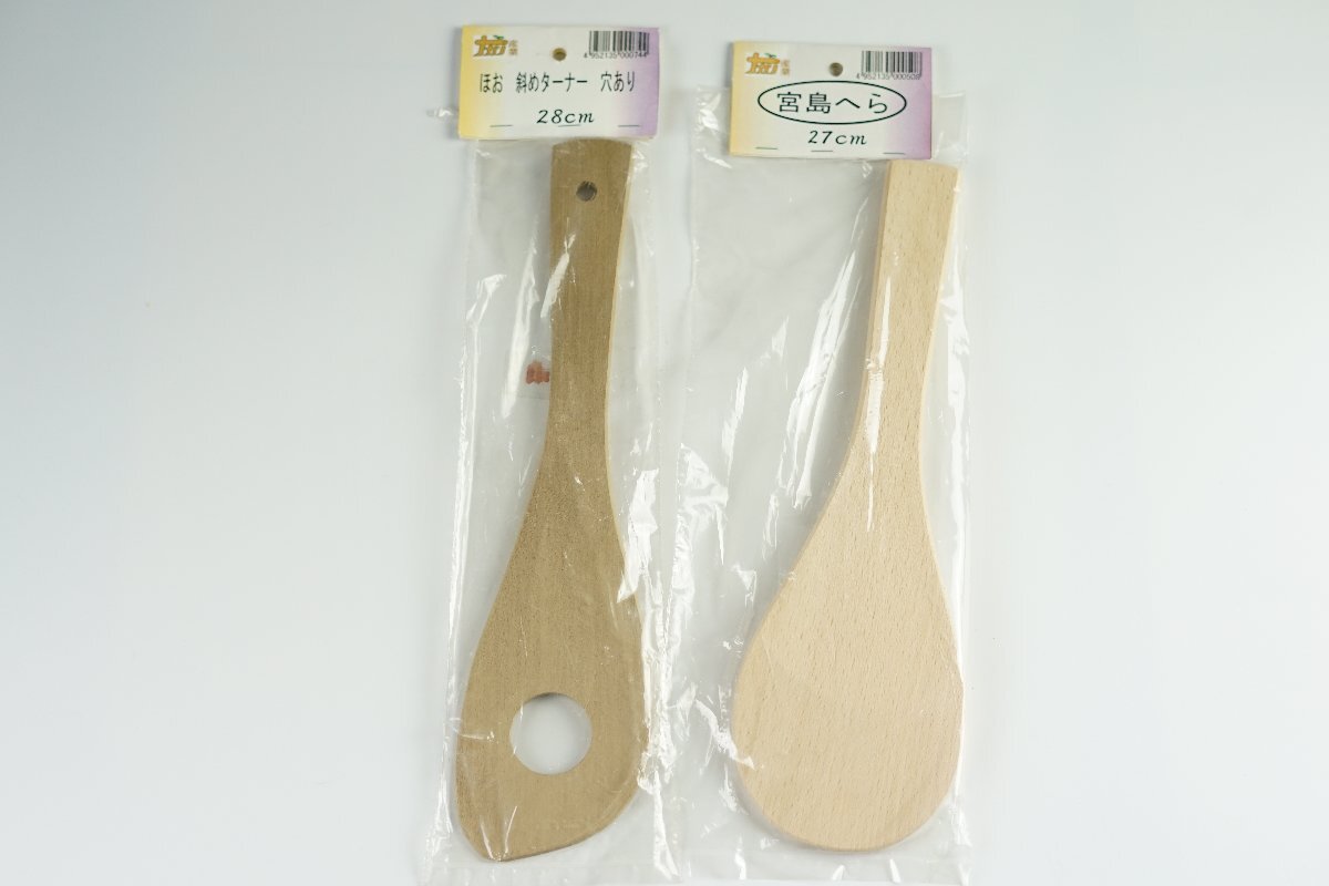 【アウトレット】現品限り! ターナー ヘラ 木べら しゃもじ 木杓子 斜めターナー 穴あり 2点セット 5509-5481 y-93