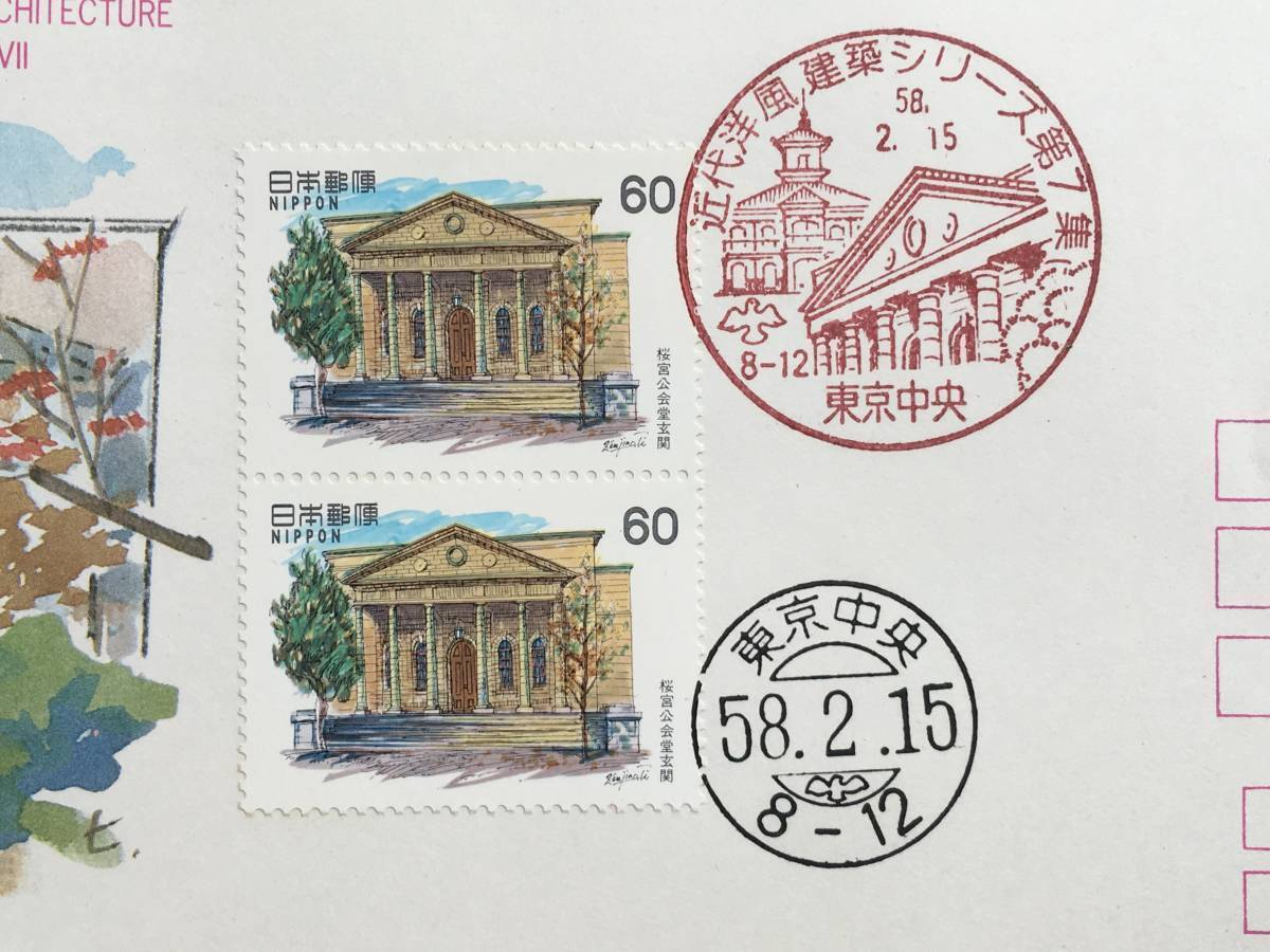 3898 全日本郵便切手普及協会 近代洋風建築切手 桜宮公会堂玄関 記念切手解説書有 東京 記念印 建物切手 即決切手 美術品FDC初日記念カバー