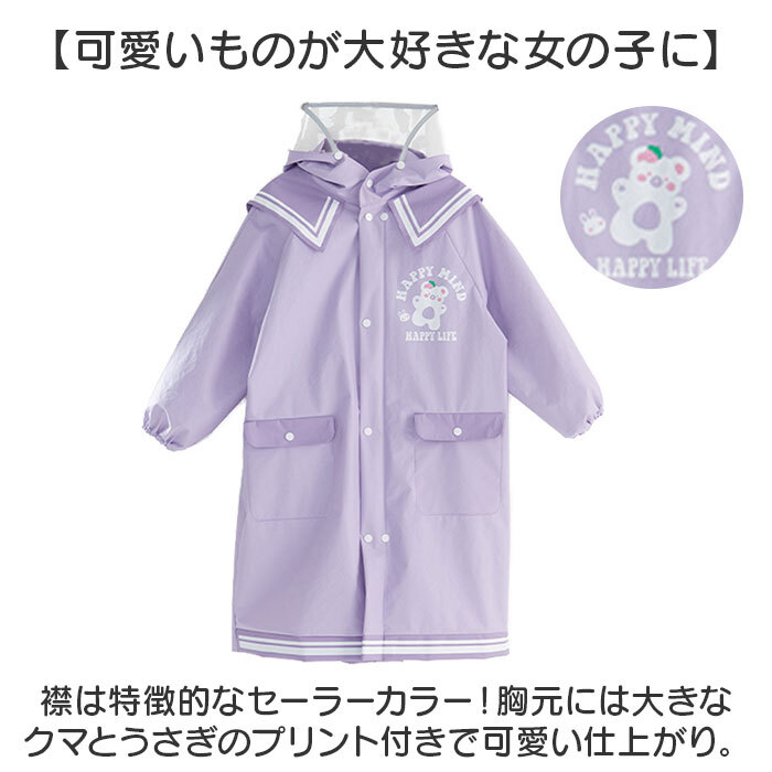 | 商品説明 | ・・【雨の日の通学に】 ・ランドセル対応!2デザイン展開のレインコートが新発売♪ ・【POPで可愛い動物デザイン】 ・男の子も女の子も喜ぶPOPなアニマルデザインが特徴。 ・【可愛いものが大好きな女の子に】 ・襟は特徴的なセーラーカラー!胸元には大きなクマとうさぎのプリント付きで可愛い仕上がり。 ・【ランドセルごとまるっとカバー】 ・ランドセルやリュックを背負ったままレインコートを着用できる、背中のマチつき。 ・【雨水が浸入しにくい仕様】 ・ファスナーとスナップボタンのダブル仕様。手首にはゴムを採用し、水濡れしにくい作り。 ・【クリア窓で視界が良好!】 ・フードにはクリア窓がついており、被ったままでもまわりがよく見える!雨が強い日でも安心。 ・【嬉しいロング丈デザイン】 ・ひざ下あたりまでのロング丈。長靴と合わせれば、しっかり全身をカバー! ・【専用の収納袋つきで使いやすい】 ・濡れたレインコートを収納できる収納袋がセットに。大きめなので低学年のお子さまも入れやすい ・【ポケット付き】 ・ハンカチなどの収納に便利なポケットを配置。雨が浸入しにくい、フラップ付き。 ・【薄暗い日も安心な反射テープ】 ・下校時や塾帰りにも安心な反射テープ付き。ライトに反応してピカッと視認性UP! |